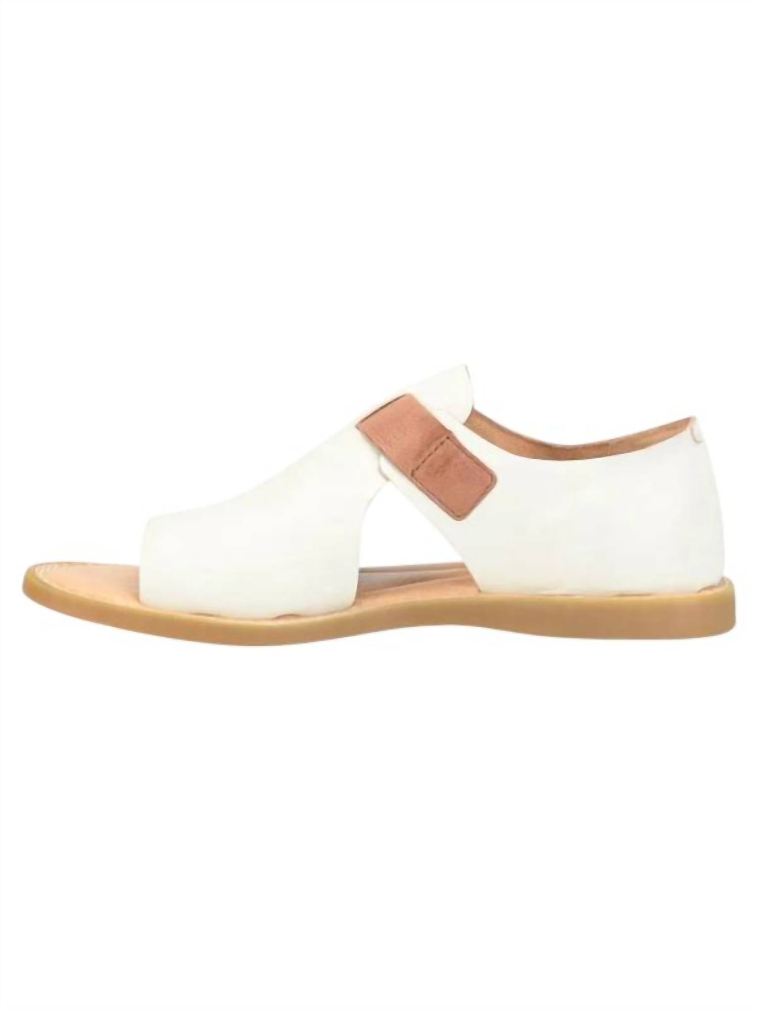 Classicly cute and all-day-wearable. We love this sandal. Step into comfort and style with the Women's Ivey Sandals by Born, crafted in luxurious Italian soft hand-finished leather. These white sandals feature a breathable micro suede lining and a cushioned microfiber-covered footbed with extra foam to ensure all-day comfort. Designed with a high-traction, flexible, lightweight rubber outsole and an inside Opanka handcrafted construction, these sandals offer durability and versatility. The flat heel measures a subtle 0.67 inches, perfect for those who appreciate understated elegance.