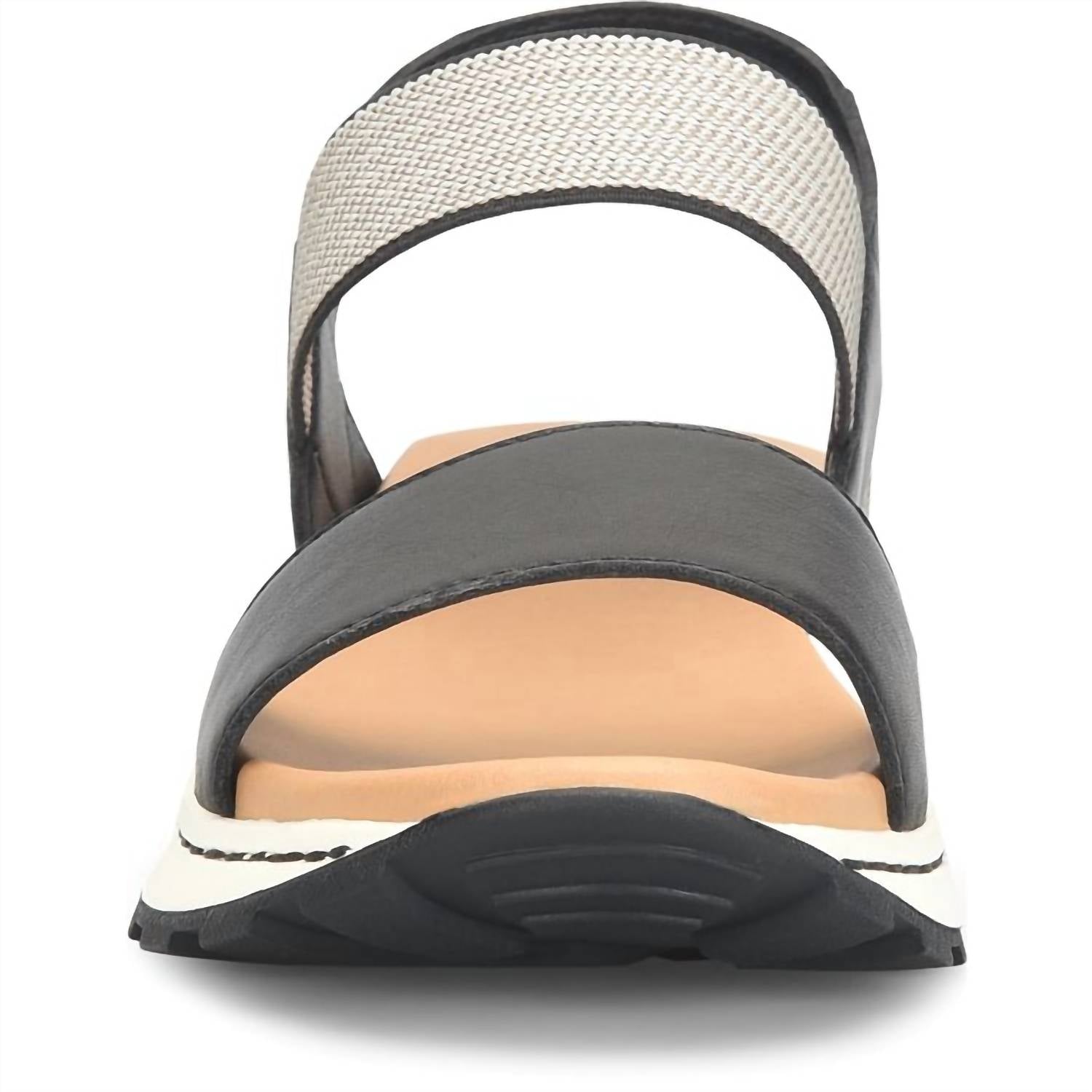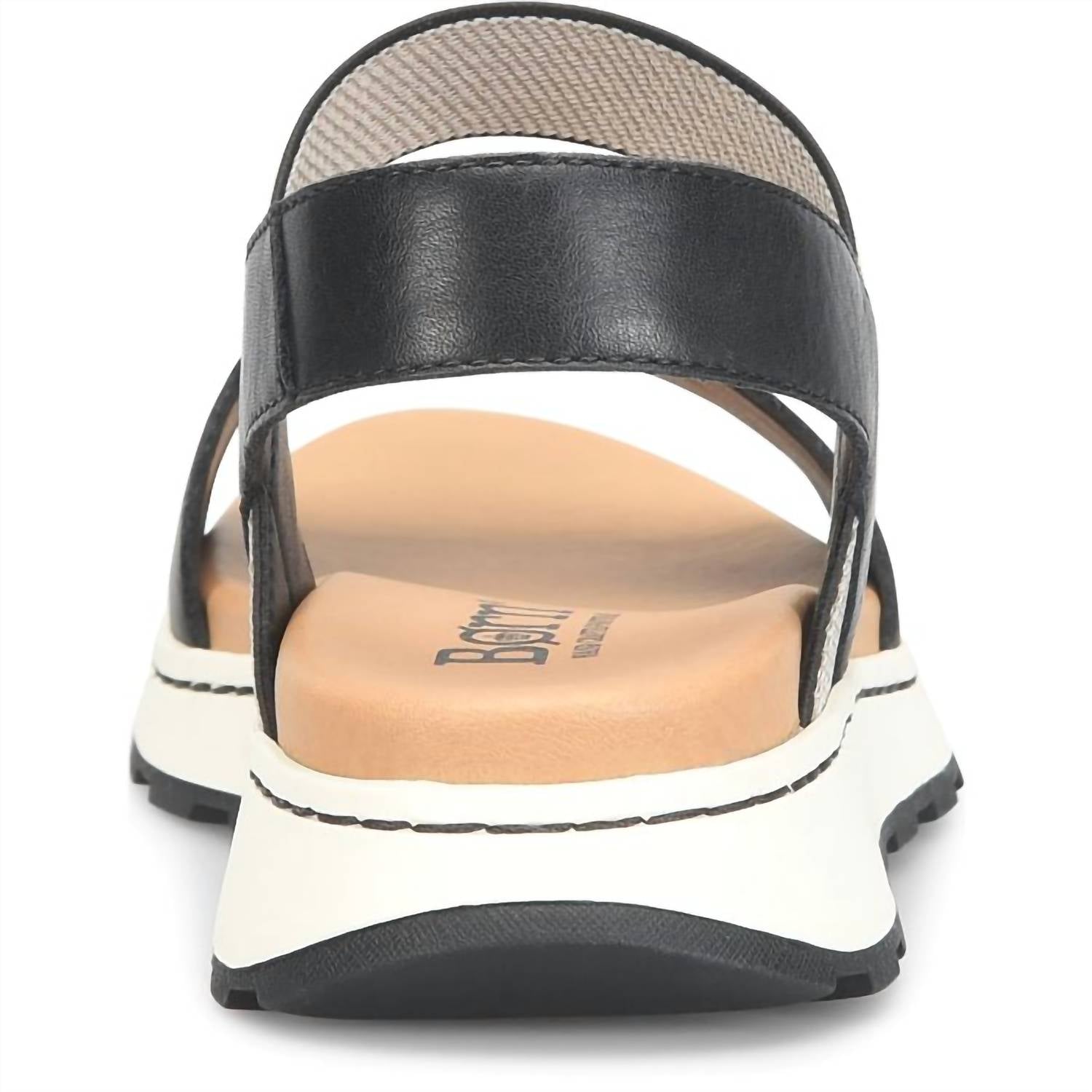 Step into comfort with the Women's Mimi Platform Sandals by Born, a superb blend of style and functionality. Crafted from soft hand-finished leather with an elastic combination upper, these black sandals provide a perfect fit paired with an open toe design. The cushioned micro fiber covered footbed and breathable micro fiber lining ensure utmost comfort, while the high traction lightweight rubber outsole offers stability. Featuring a handcrafted Inside Opanka construction, the design includes a 1-inch wedge and 3/4-inch platform, making them a must-have for an effortless, stylish look.