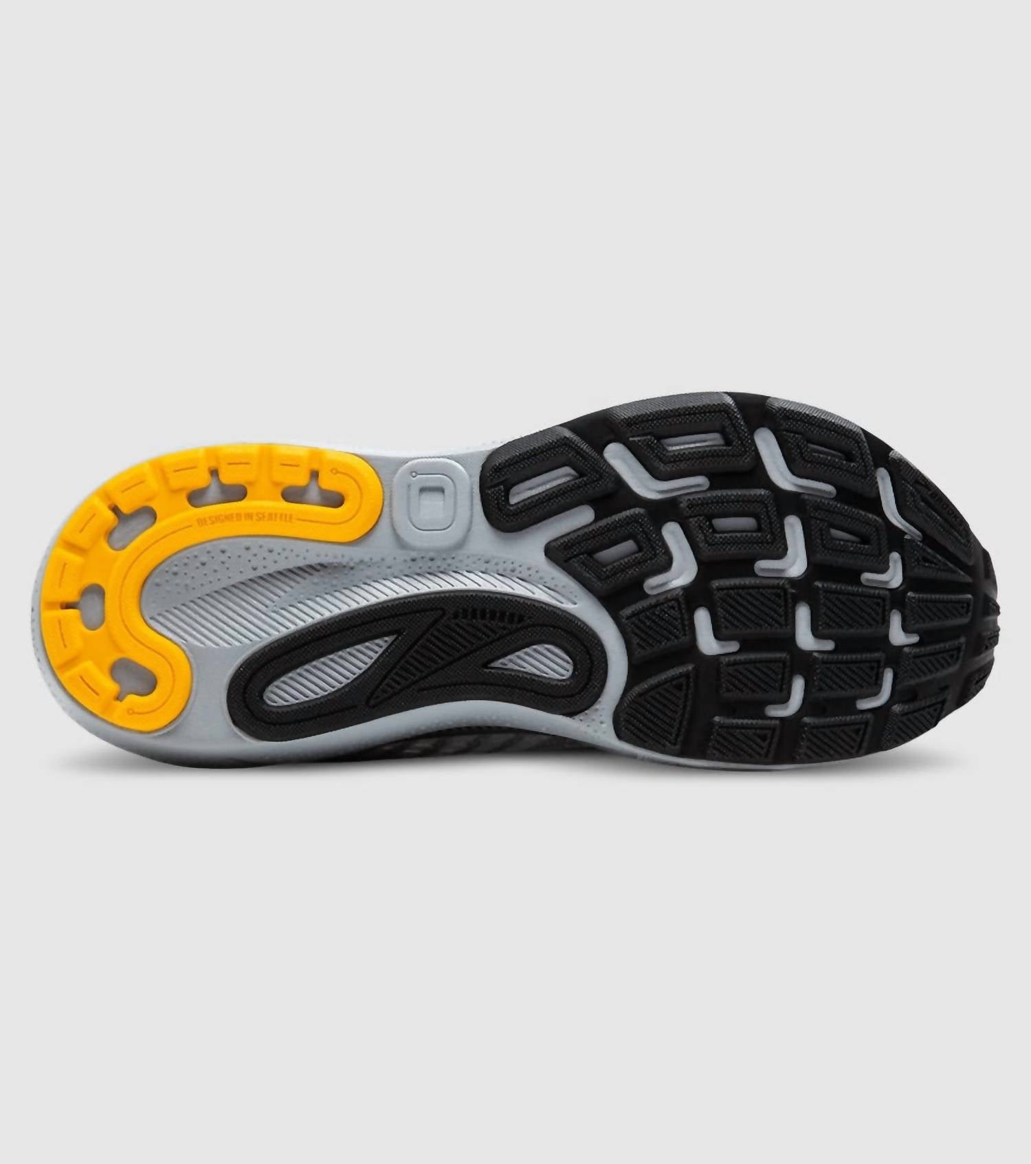 When fashion meets function. Introducing the Men's Adrenaline GTS 24 Running Shoes by Brooks, an athletic essential in a stylish alloy/white/gold fusion color. Perfect for summer workouts, these shoes are designed for overpronators seeking support in every stride. Constructed with an engineered Air Mesh upper for breathability and an innovative GuideRails Holistic Support System to maintain optimal body alignment. The nitrogen-infused DNA LOFT v3 midsole offers soft, adaptive cushioning, complemented by a recycled RoadTack Rubber outsole for lightweight durability. With a 12mm heel-to-toe drop and a stack height of 35.5mm, these shoes ensure soft landings and smooth transitions for men's fitness routines.