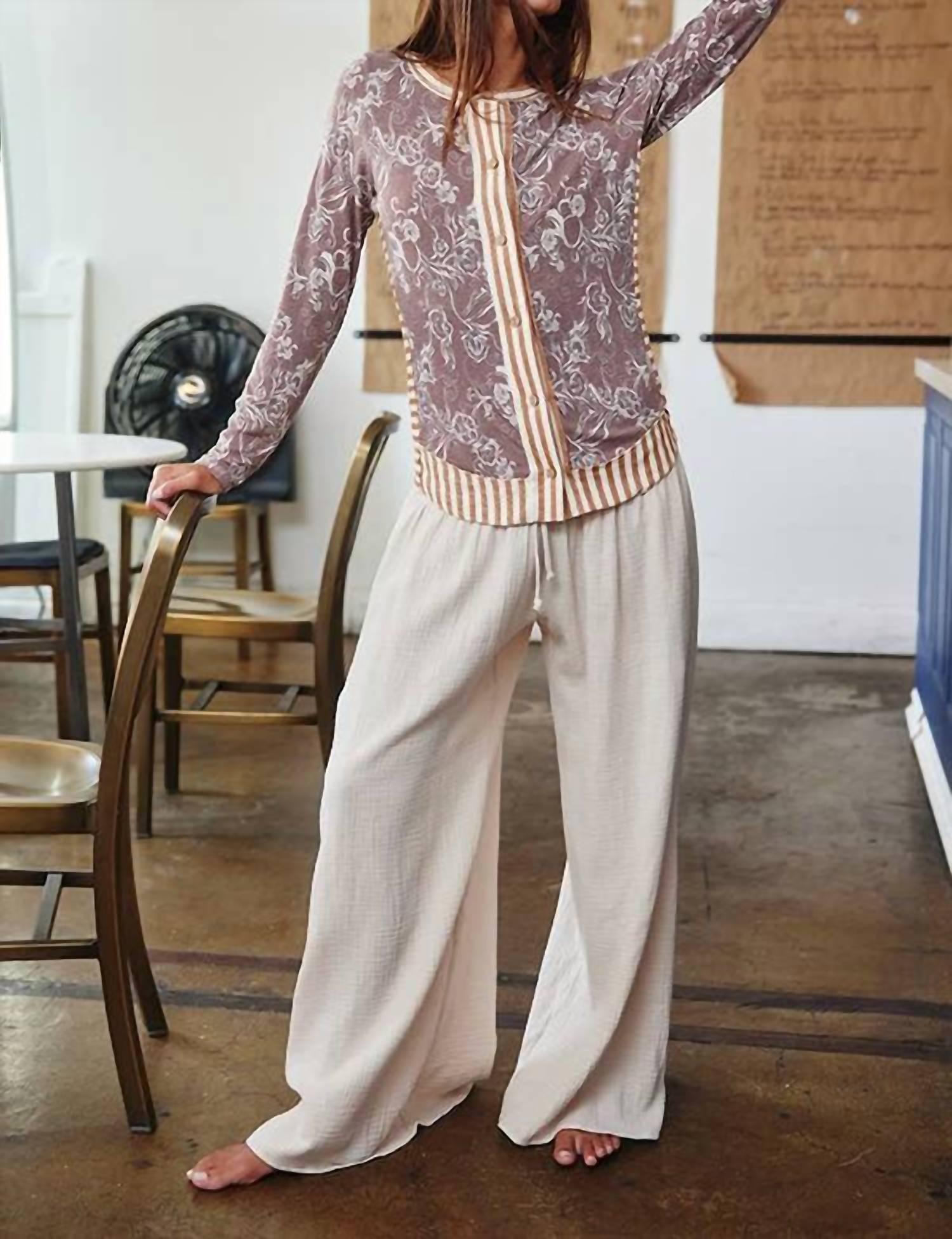 Great fit, cute design, soft fabric. You'll love everything about this long sleeve tee. Elevate your spring wardrobe with the Stripe Contrast Top by BUCKETLIST, showcasing a playful floral print knit with striking stripe details. Designed with long sleeves and a comfortable round neckline, this multi-colored top is styled with a button closure for easy wear. The curved hemline ensures a relaxed fit, perfect for everyday comfort. Ideal for women seeking a blend of style and ease, this top doesn't just make a statement—it's a staple for the season.