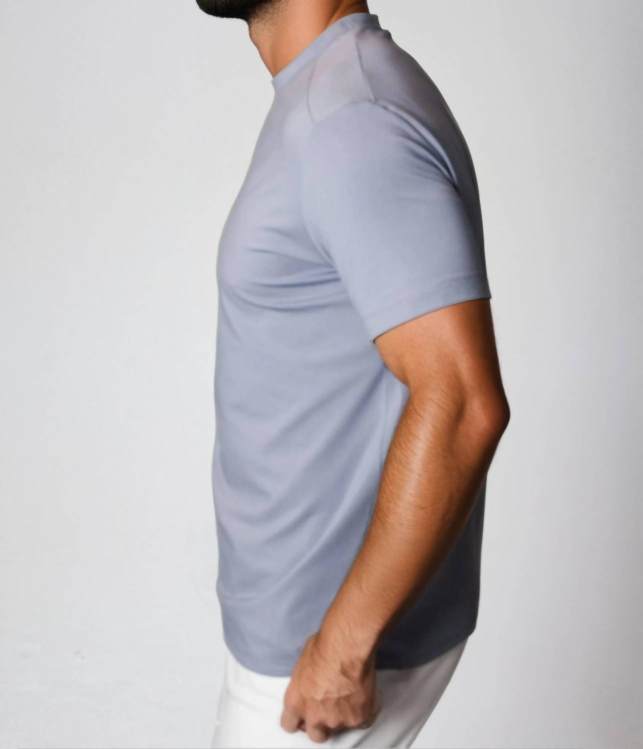 Introducing the Buki CINQO™ Tech Tee, a minimalist essential for any wardrobe, designed for superior performance in a versatile grey. Crafted from an ultra-soft Supima Plus™ cotton blend, this short sleeve crewneck tee offers four-way stretch with exceptional shape retention and advanced moisture management to keep you cool and dry. The pull-on style is wrinkle-resistant and ensures color retention up to 50 washes, making it a practical choice for fitness or everyday wear. Care for this sustainably made tee by machine washing, and embrace the effortlessly polished look perfected in Seattle.