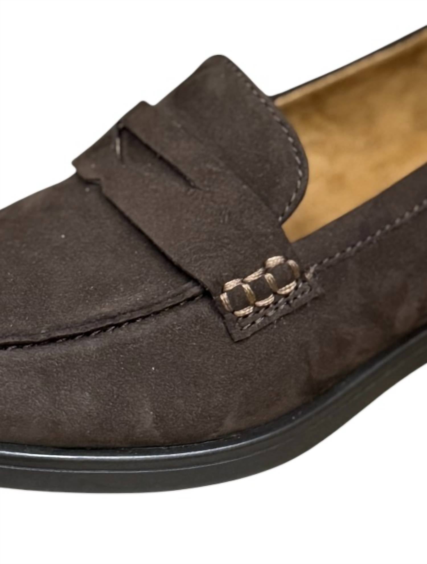 A classic loafer that is both comfortable and polished. Meet the Bussola Pietra Loafers, an ideal choice for a sophisticated fall wardrobe. Perfect for church or workwear, these loafers are styled in a rich Ugo Dark Coffee hue with a classic round toe. They feature a low block heel measuring 1 1/4"-2", delivering comfort and style for any occasion. Designed for adult women, they are the perfect shoe for Thanksgiving gatherings and beyond.