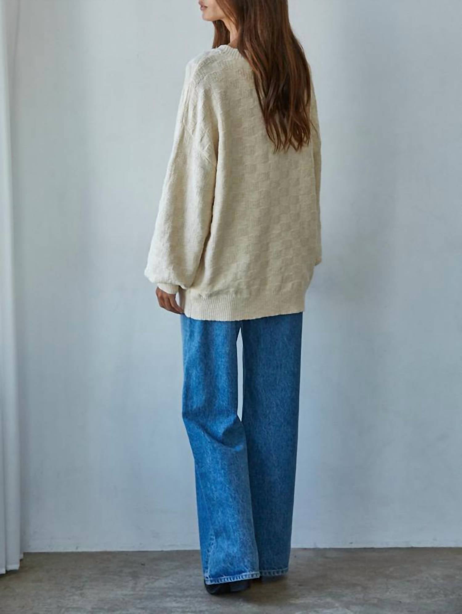 Elevate your fall wardrobe with the Iona Checkered Knit Pullover by By Together, a chic piece in elegant cream that features a timeless check pattern. Crafted from 100% cotton, this pullover exudes vintage charm and provides a cozy fit with long sleeves. The crewneck design is complemented by a convenient pull-on closure, making it ideal for holiday parties and Thanksgiving gatherings. Measurements include HPS Length: Small 28", Medium 28.5", Large 29"; Chest: Small 22.75", Medium 23.75", Large 24.75".