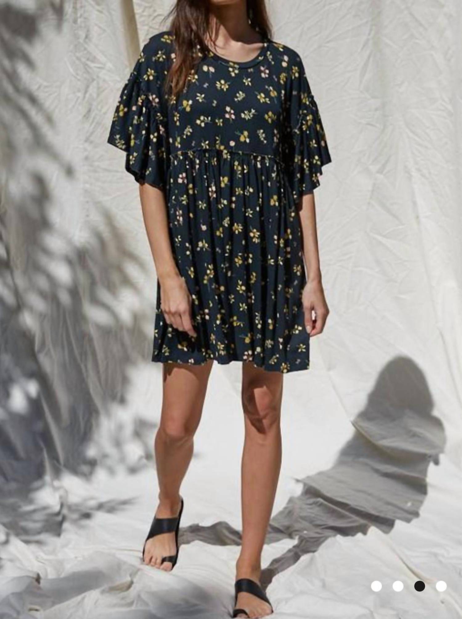 The perfect mini dress for those warmer months. Elevate your wardrobe with the Maria Day Dress by By Together, perfect for day-to-night transitions. This short sleeve dress comes in an elegant black floral pattern with a flattering A-line silhouette. Made from 95% rayon and 5% spandex, it offers comfort and style. Care instructions include washing gentle cold and line drying this chic piece.