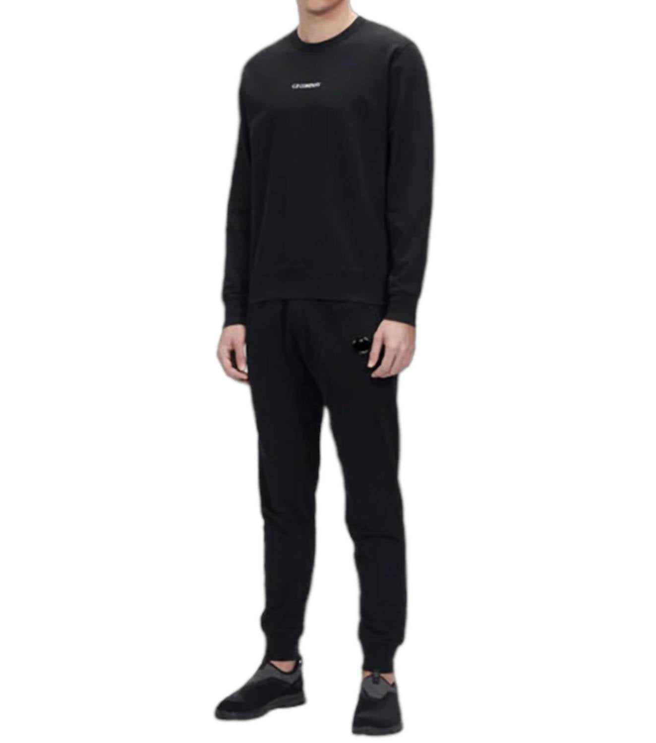 Elevate your casual style with the C.P. Company Crew Neck Sweatshirt, perfect for a Thanksgiving gathering or holiday party. This minimalist black sweatshirt features long sleeves, and is crafted from 100% cotton, ensuring comfort and breathability. It comes with ribbed cuffs, bottom, and collar, and proudly displays the CP Company logo. Closure is designed in a convenient pull-on style, while the garment dyed finish offers enhanced depth and chromatic intensity.