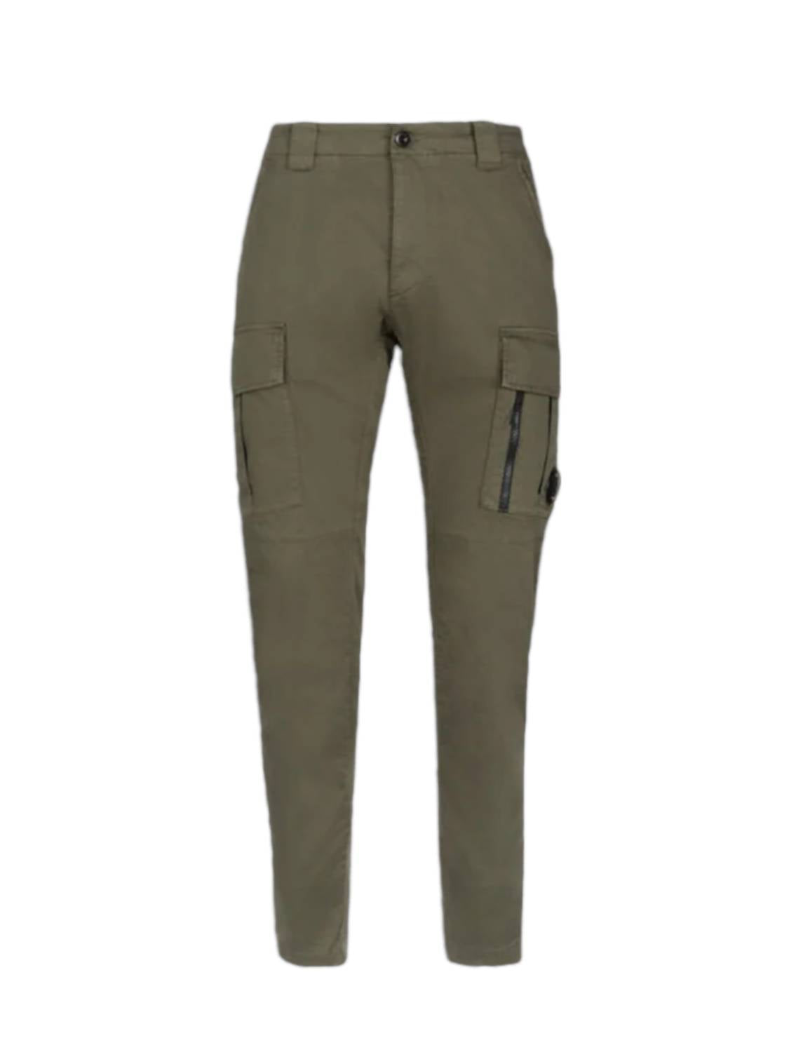 Introducing the Functional Loose-fit Cargo Trousers by C.P. Company in a striking bronze green color, perfect for any holiday party. Crafted from a blend of 98% cotton and 2% elastane, these trousers offer durability and a soft fit with a stylish garment-dyed finish. They feature a button closure with a covered zip, slant front pockets, two back pockets, and two cargo pockets with flaps and the signature C.P. Company lens. A regular fit and straight leg style make them ideal for the streetwear trend.