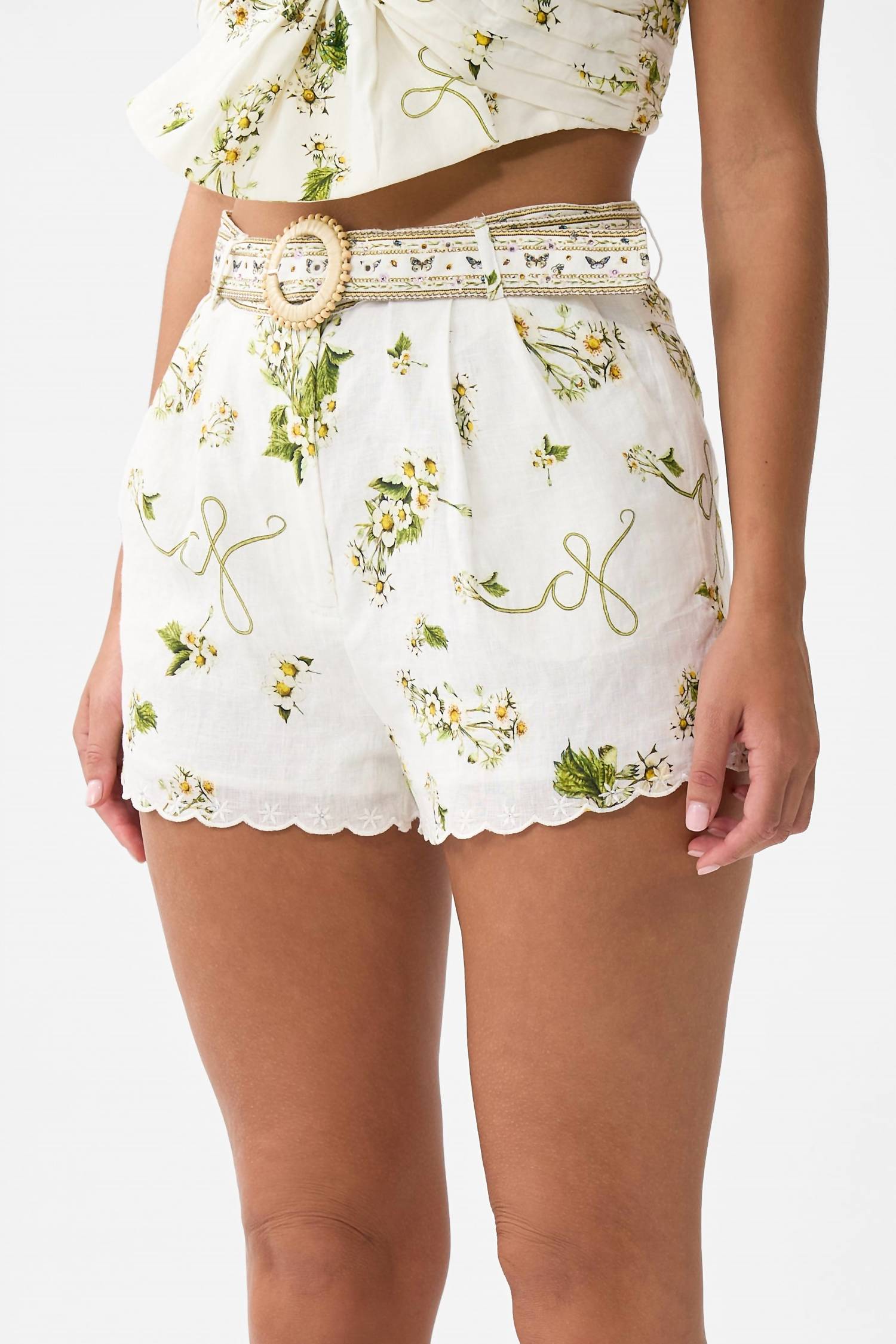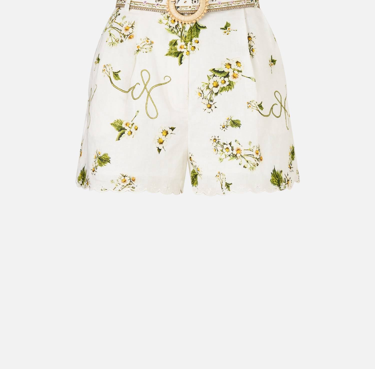 Tuck your favorite tee into these high-waist shorts for a more casual-cool feel. Elevate your vacation wardrobe with the Camilla Tuck Front Short, a piece that embodies the spirit of spring with its maximalist, patterned design in Botanical Utopia. Crafted from 100% premium linen, these high-waisted shorts provide a breathable and durable fit ideal for warm-weather dressing. Featuring a subtle A-line flare, waistband tuck details, and a practical zip and button closure, complemented by a removable belt, these shorts are designed with meticulous attention to detail. Proudly designed in Australia, these shorts require dry cleaning to maintain their luxurious quality.