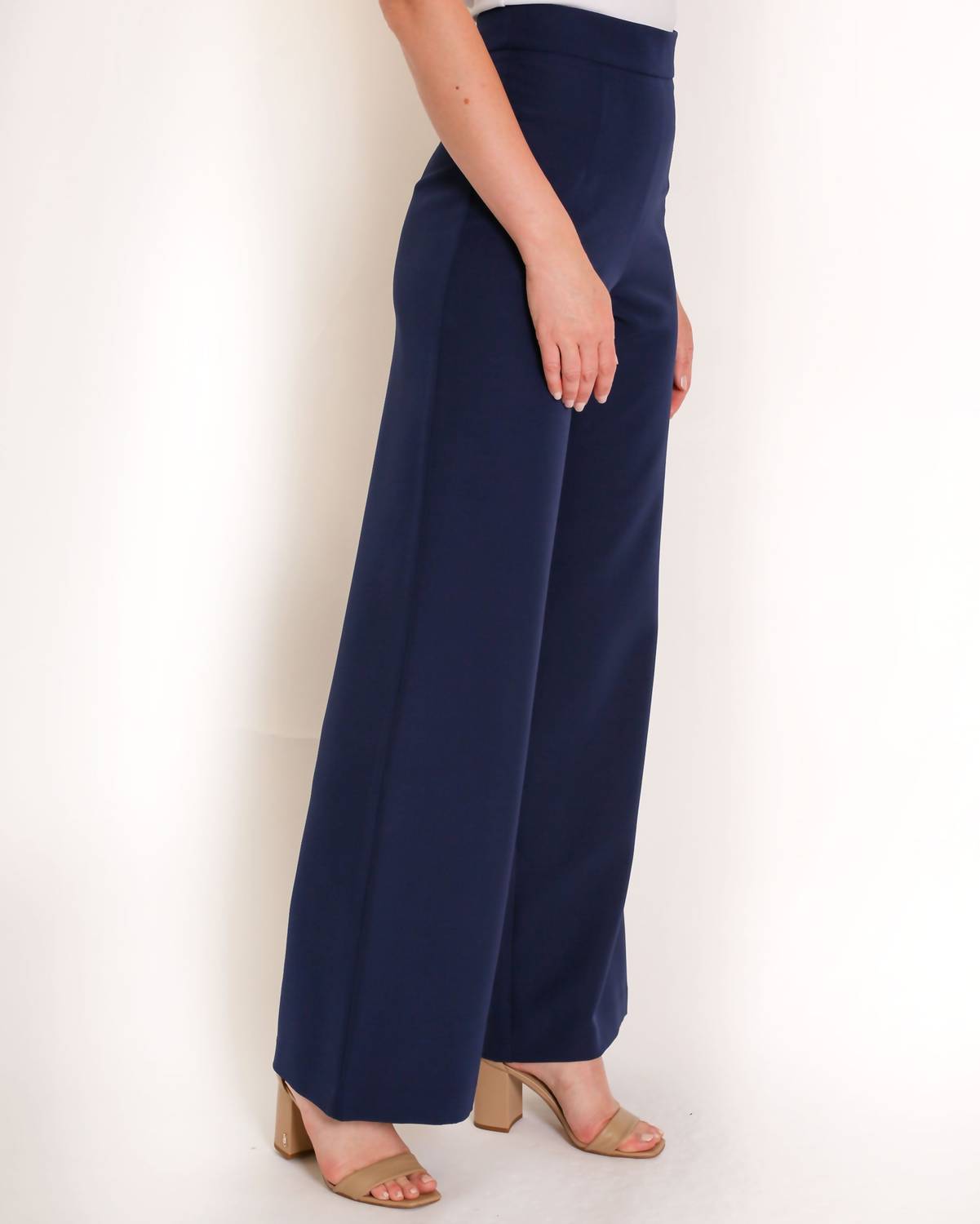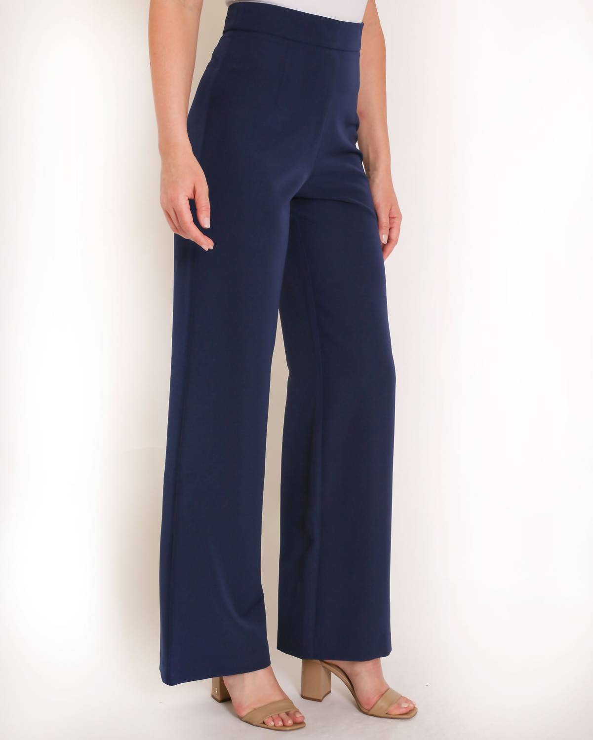 Silhouette: Wide LegFit: True to sizeClosure: Invisible Side ZipperFabric: Stretch CrepeCare: Dry Clean OnlyFully Lined: No