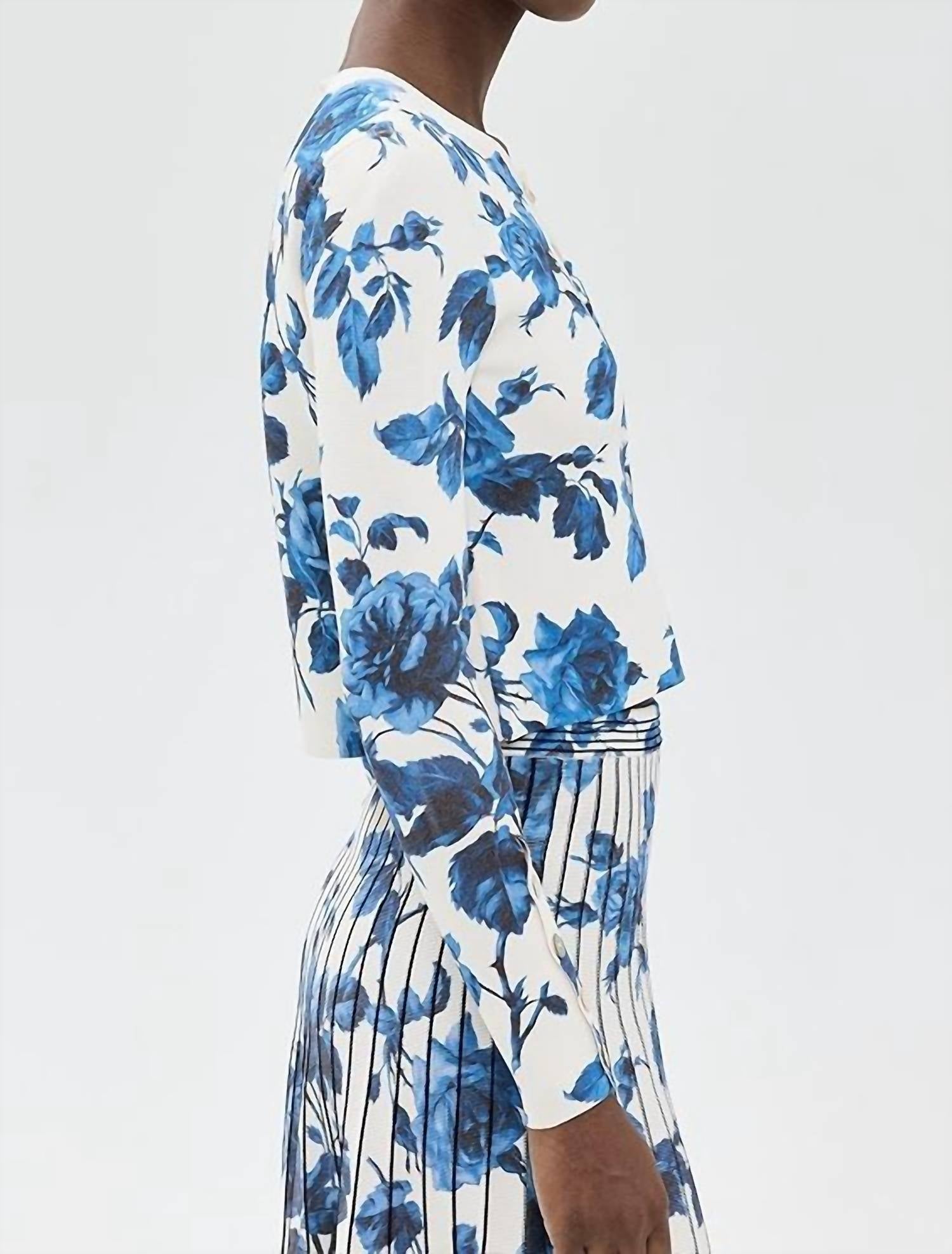 A classic fit that works just as good buttoned as it does left open. Step into spring with the Amber Cropped Cardigan by Cara Cara, a stylish choice for any engagement event. This boho chic cardigan features an intricate floral pattern in the color Altha Flora Stone, and it rocks a classic crewneck with long sleeves. Made from a mid-weight compact knit, the fabric composition is 80% viscose and 20% nylon, ensuring comfort and style. This 17-inch long cardigan has a secure button closure and requires dry cleaning for optimal care.