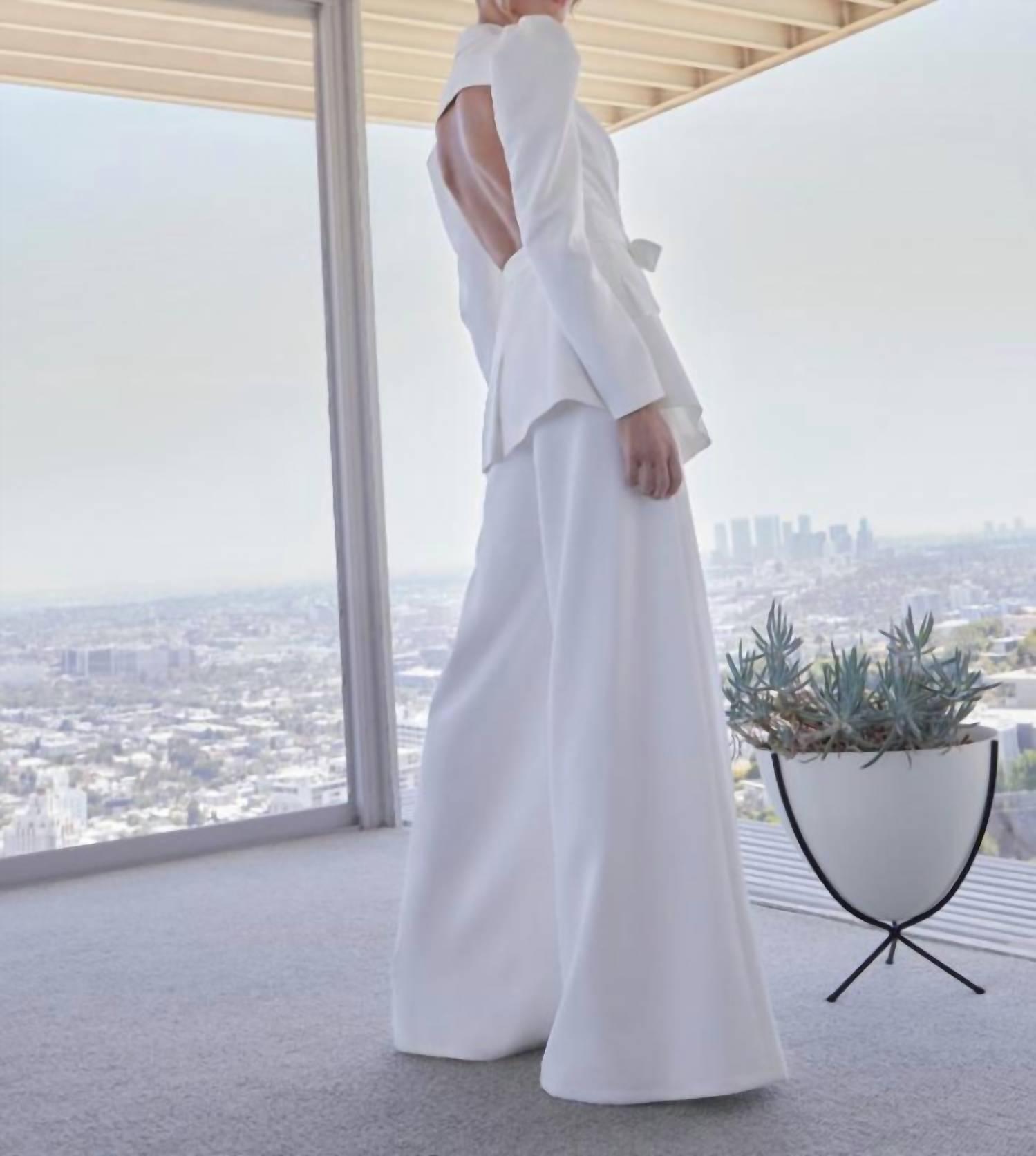 Introducing the Celosia Subtle Puff Sleeve Jacket by Casablanca, perfect for a chic fall wedding statement. This elegant ivy-toned jacket features long sleeves, crafted in luxurious stretch chiffon, showcasing a sophisticated solid pattern. With a unique tie closure at the waist, it accentuates your figure while offering a chic V-neck design. Ideal for nuptial affairs, this minimalist piece effortlessly embodies style and grace.