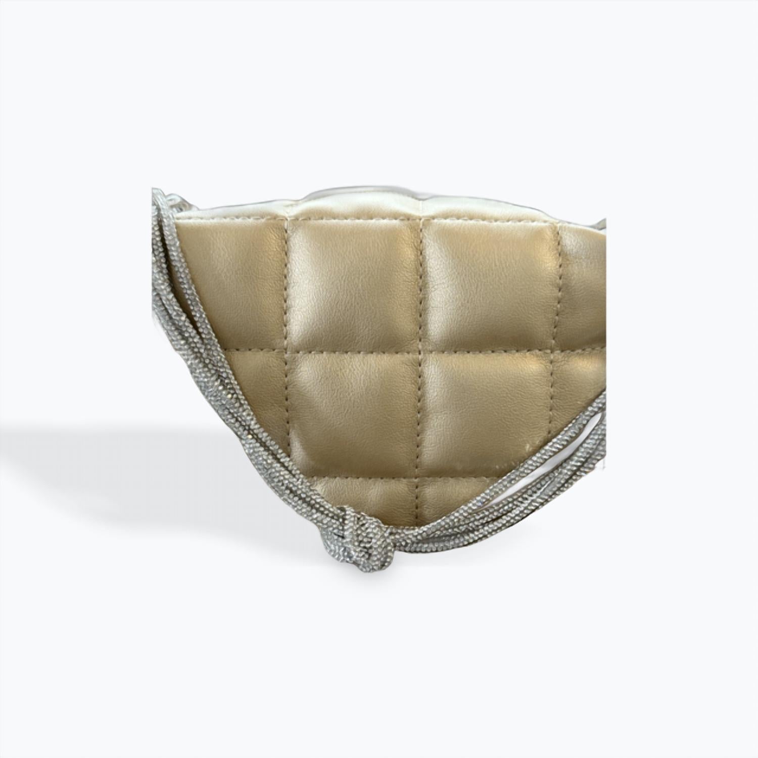 Now trending: Mini bags! Quilted box bag with a delicate faux rhinestone handle & removable chain to wear over the shoulder or as a crossbody bag. She's perfect for any special event. Silver top zip closure with one inside pocket Detachable silver colored shoulder chain shoulder strap drop: 24 inches 5.5in H x 8.5in W x 3.5in D Synthetic materials Imported