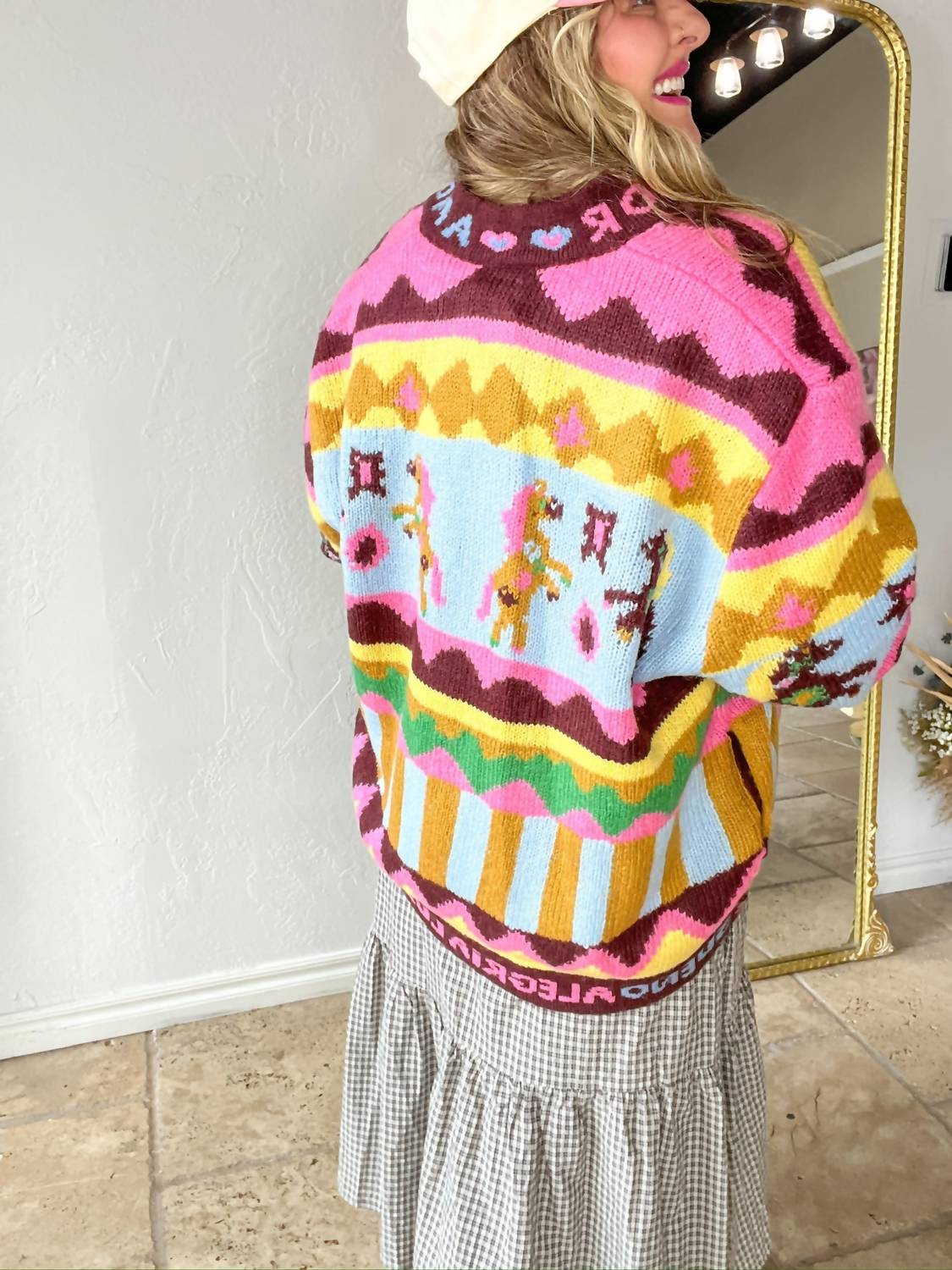 Throw this adorable cardigan over any cami or tank top. Meet the Scintilla Jacket by CELiA B, a vibrant multi-colored piece designed for the fashion-forward maximalist. With long sleeves and a stylish V-neck, this cardigan is a travel essential crafted from a luxe nylon blend. Its pull-on closure ensures comfort, and the composition is as follows: Shell: 47% Acrylic, 30% Nylon, 15% Wool, 8% Mohair; Lining: 95% Polyester, 5% Spandex. Care: Dry clean only and skip the bleach for best results.
