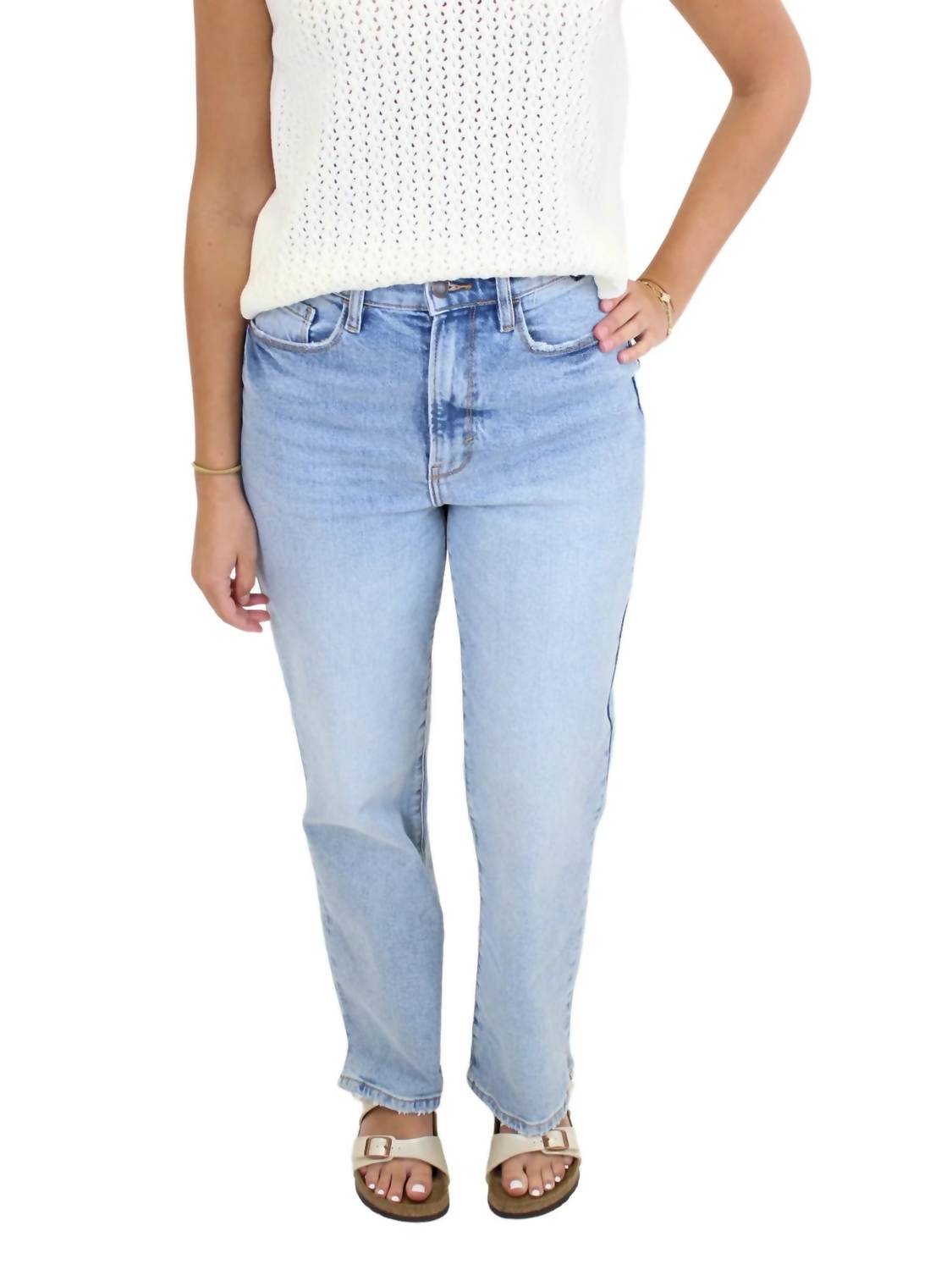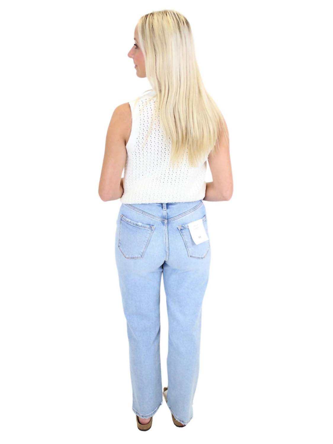 Fit to perfection, we love these high-waist jeans and you will too. Experience effortless style with the Cello Super High Rise Dad Jeans in Light Denim, a must-have for any trend-conscious wardrobe. These jeans offer a modern twist on classic denim with a relaxed fit and a straight leg, featuring a 31" inseam and a super high waist that beautifully complements any top. Constructed from a durable cotton blend, 99% cotton and 1% spandex, they provide slight stretch and comfort. The jeans feature a button fly closure and practical pockets, and for care, wash inside out on a gentle cycle, avoiding bleach, and hang to dry.