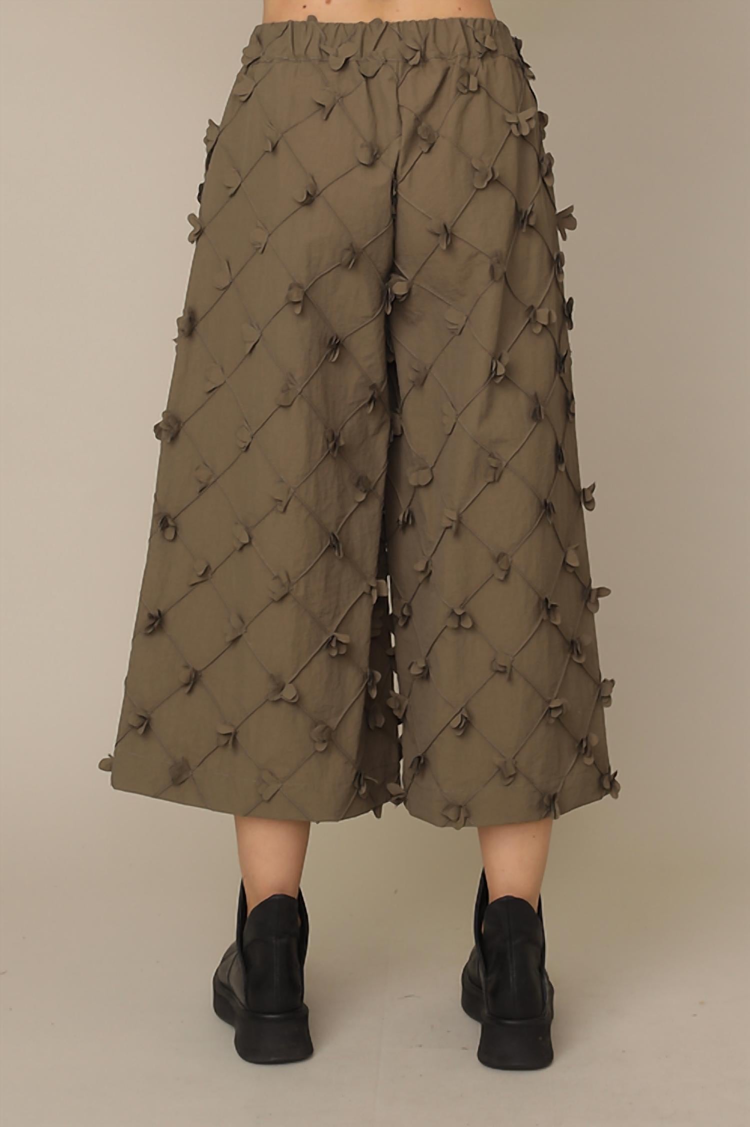 Elevate your holiday wardrobe with the Maribel Pants by Chalet et Ceci, a chic addition in a balm hue perfect for any Thanksgiving gathering. These high-rise, wide-leg pants feature a relaxed fit and a textured pattern, providing both comfort and style. Made in the US from 100% Nylon, they offer a practical pull-on closure and handy two-pocket design. Care is simple with machine wash and tumble dry instructions, making these pants a versatile staple for the spring season. Available in sizes ranging from XS to XL, with waist measurements starting at 30 inches and inseams reaching up to 25 inches.