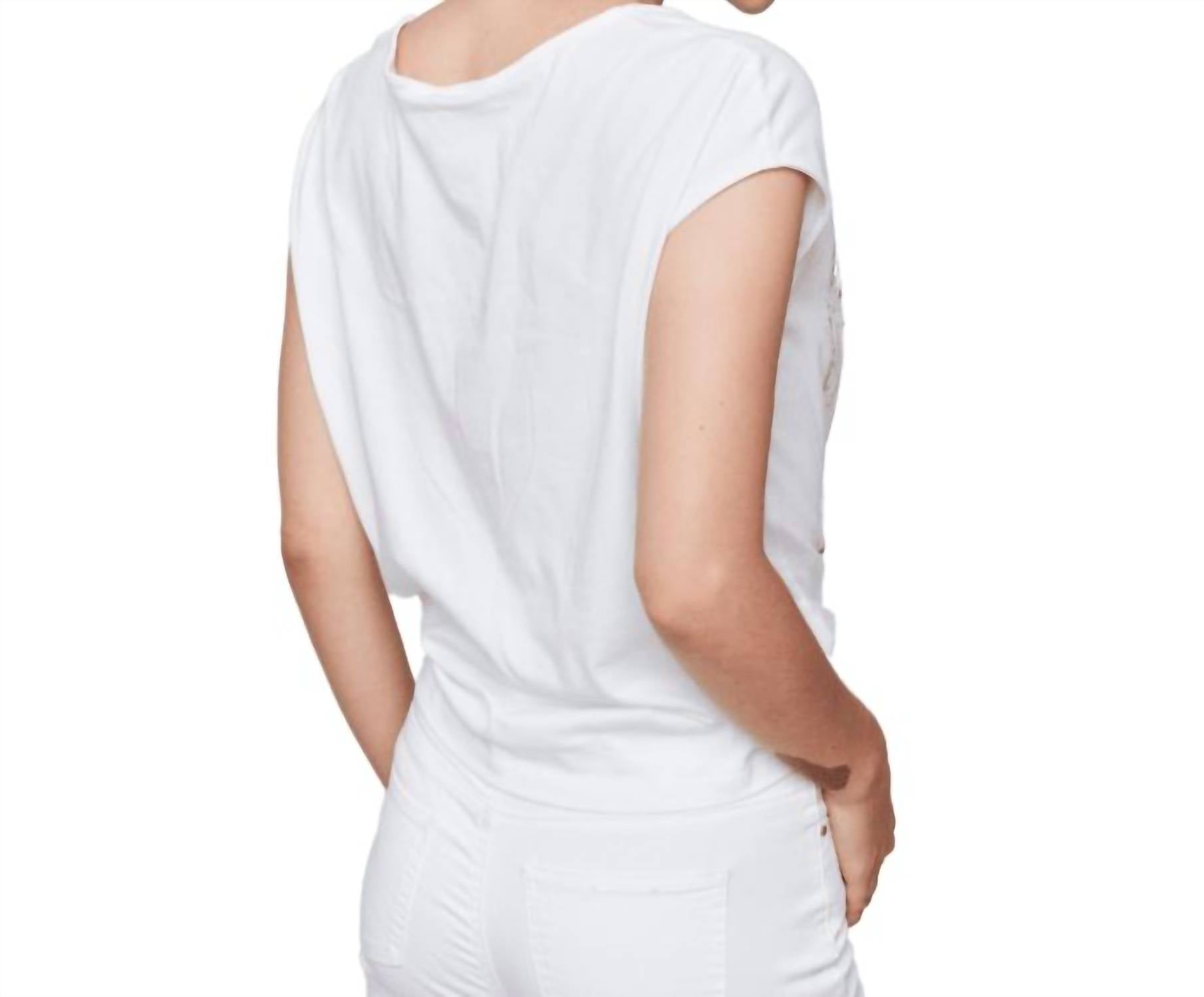 The short sleeve tee you'll want in every color. Elevate your spring and summer wardrobe with this playful cap sleeve top. Featuring a unique foil design and a trendy front knot detail, it adds a stylish touch to any outfit. Made from 100% Cotton, it offers a comfortable standard fit with drop shoulder short sleeves for effortless, casual style.