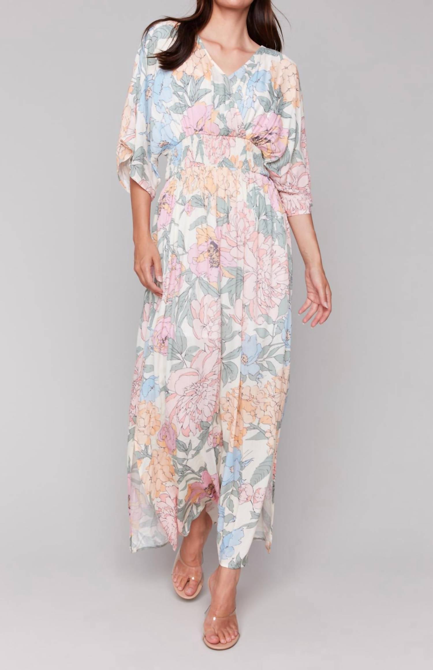 Charlie B - Dolman Sleeves Floral Maxi Dress With Side Slits