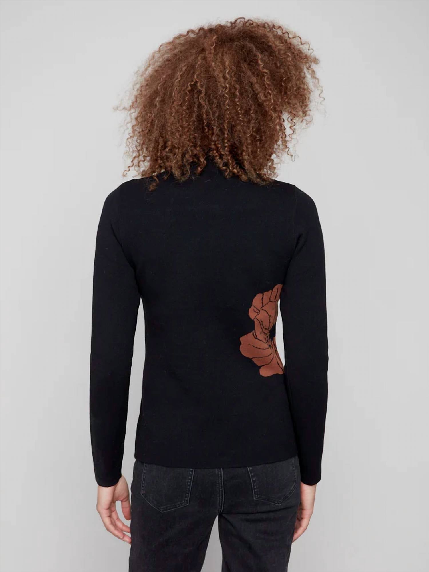 A classic staple that every closet needs. Fall in love with how useful this sweater is because it can be worn both ways. It has a stylish mock neck and a beautiful leaf pattern on one side. One side has a black base with brown cacao leaves, and the other side flips over to have a brown cacao base with black leaves. Because it's made of a soft, cozy blend, it's great for stylish and cozy fall events—two looks in one! Mock neck slim fit Reversible style Long sleeves: Why We Love It The soft blend of fabrics makes sure a good fit, and the leaf pattern makes it look classy. Ideal for staying stylish and warm. Care and Fabric There are 45% viscose, 28% polyester, and 27% nylon in the sweater. Do not bleach. Wash by hand in cold water, lay flat to dry, iron on low, or dry clean if necessary. The item's back length is 24 inches (61.0 cm), based on a size M. Model is 5'10" tall and wears a size S.