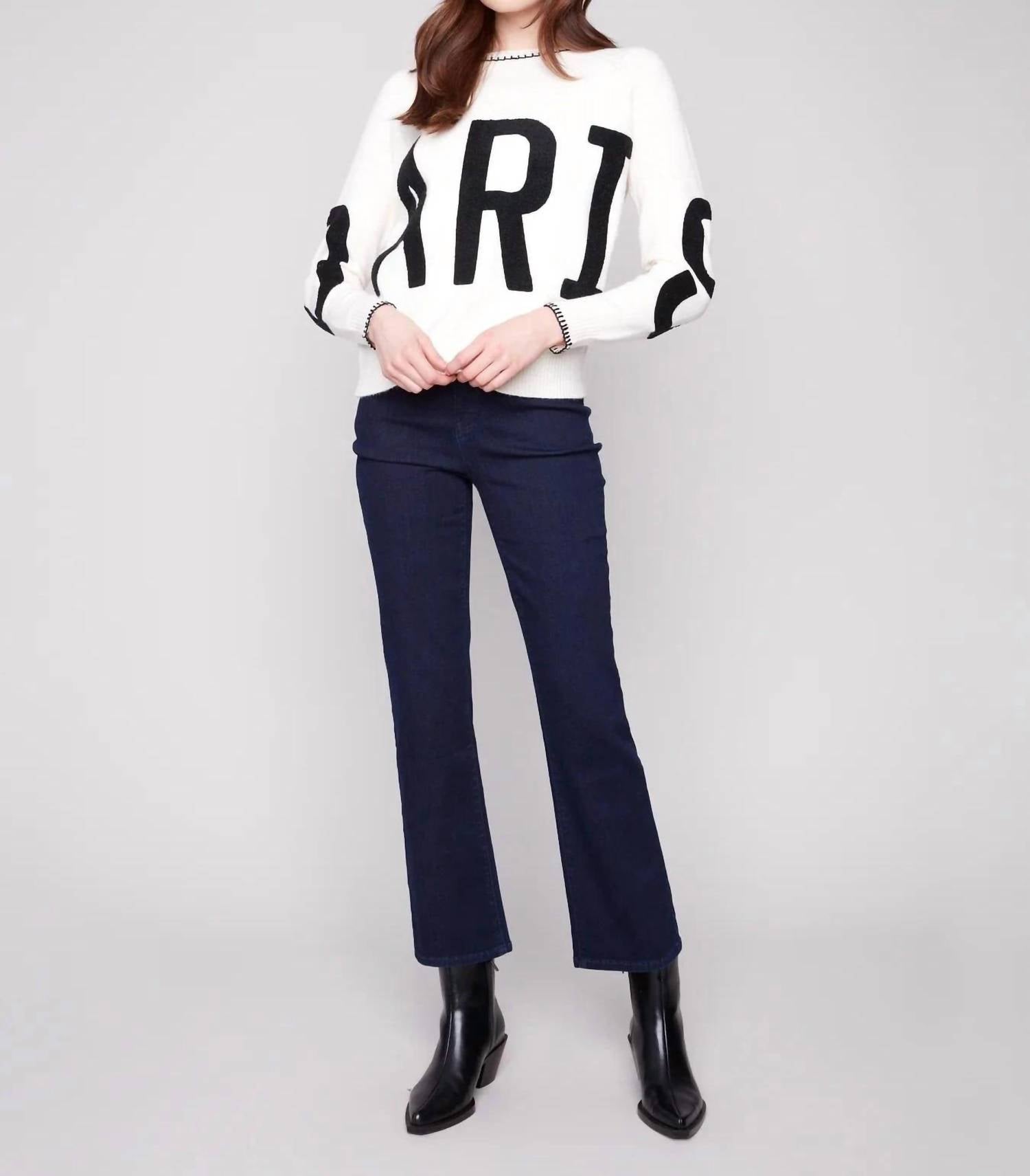 The ultimate go-to sweater, expertly crafted to provide the perfect combination of warmth and style. Its classic design and soft fabric make it a must-have addition to your wardrobe. Introducing the Paris Bouclé Sweater by Charlie B, a chic and cozy piece perfect for your fall wardrobe. This long-sleeve sweater features a crewneck design and a graphic pattern that adds a touch of Parisian-inspired style. With a relaxed fit, it's crafted from soft-textured fabric in elegant white, suitable for travel and streetwear looks. This pull-on sweater is made without pockets and is designed for dry clean care only.