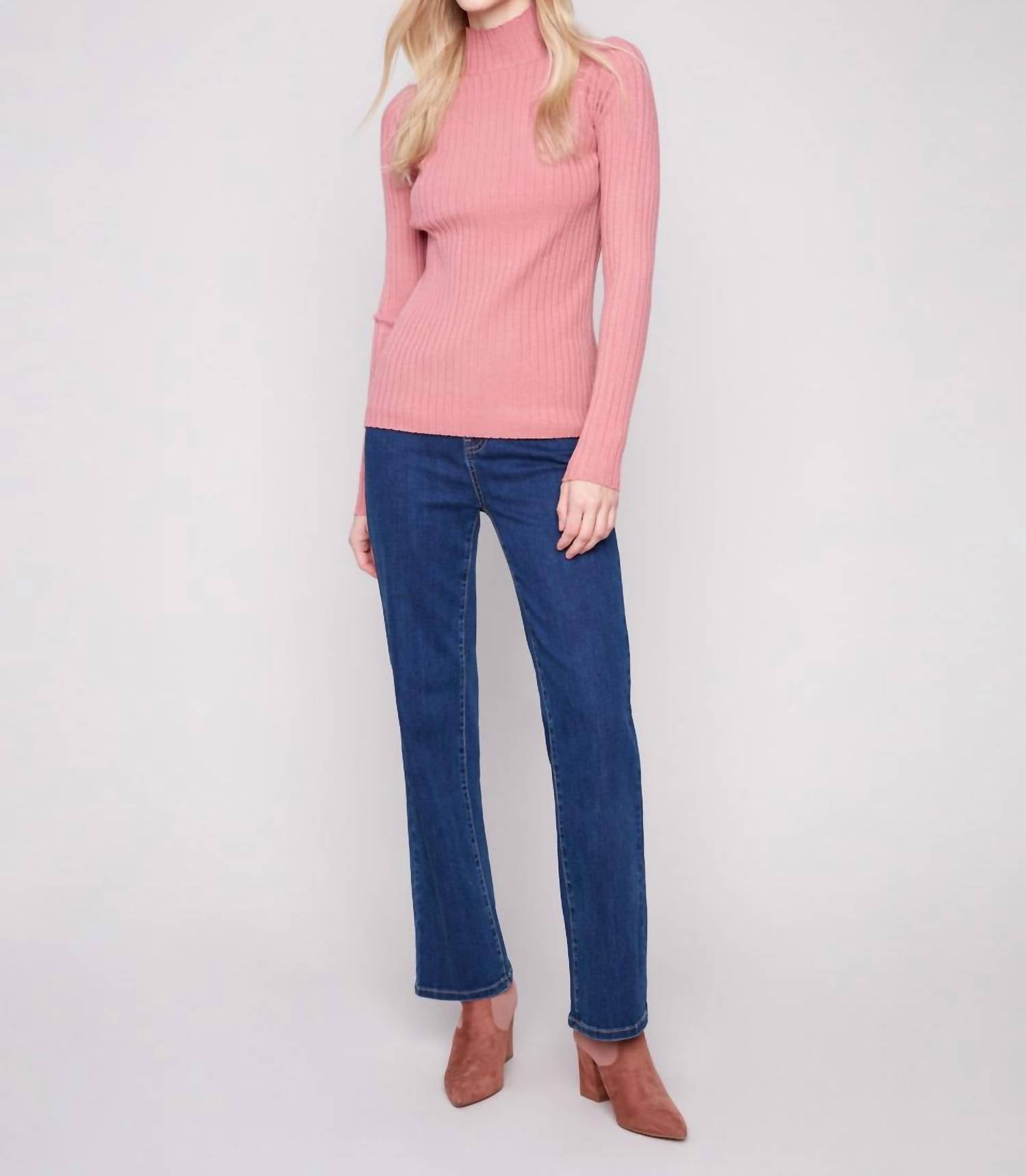 Charlie B - Ribbed Knit Mock Neck Sweater