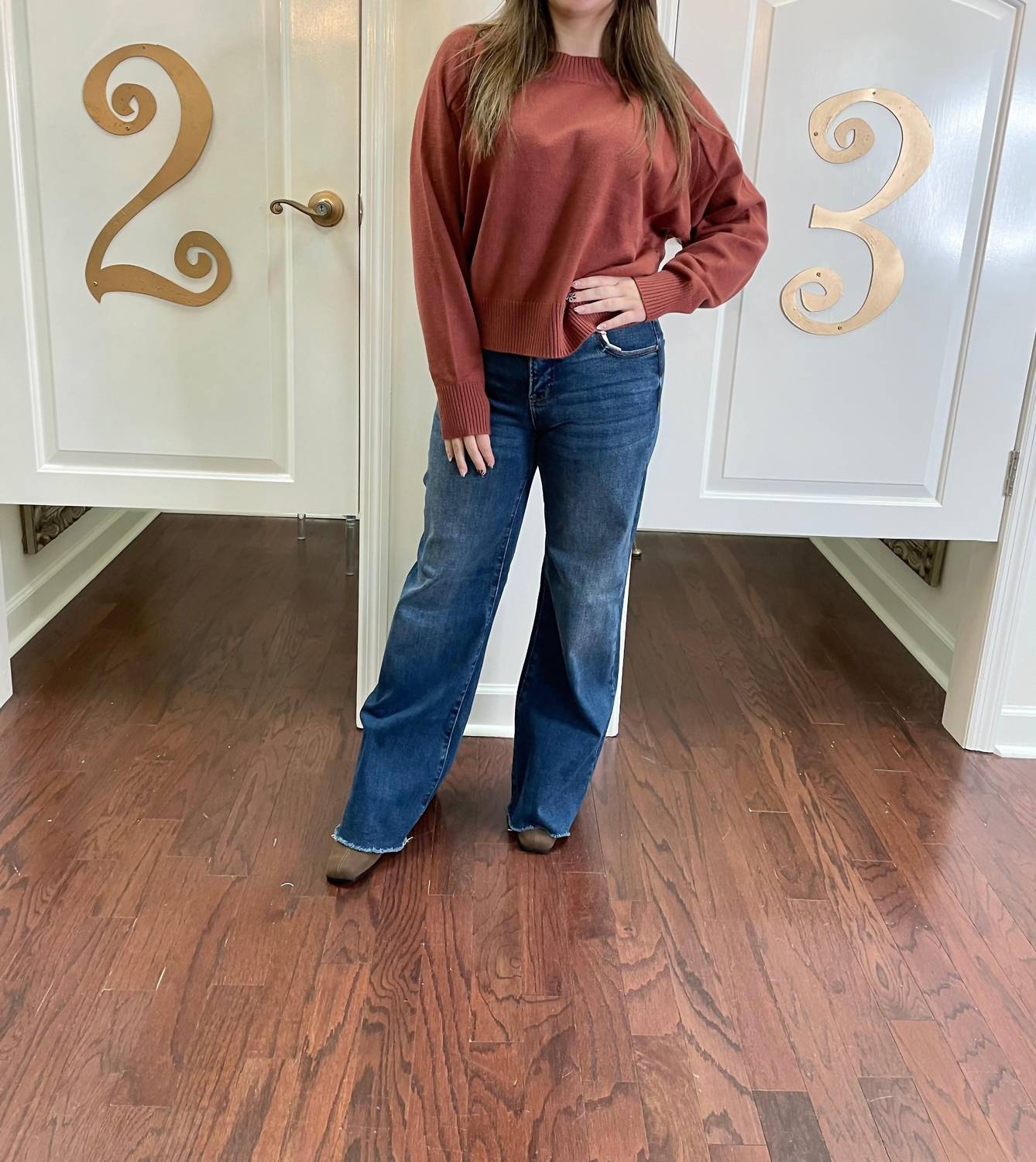 The ultimate go-to sweater, expertly crafted to provide the perfect combination of warmth and style. Its classic design and soft fabric make it a must-have addition to your wardrobe. Wrap yourself in luxury with the Paige Crewneck Sweater by Charlotte Avery, an elegant piece in a striking rust hue. Featuring long raglan sleeves and a classic crewneck design, this solid-patterned sweater is crafted from a luxurious cashmere blend for unmatched softness. Closure: Pull-on. Care: Machine wash. Perfect for a minimalist fall aesthetic, this sweater runs true to size, ensuring fit and comfort for every casual occasion.