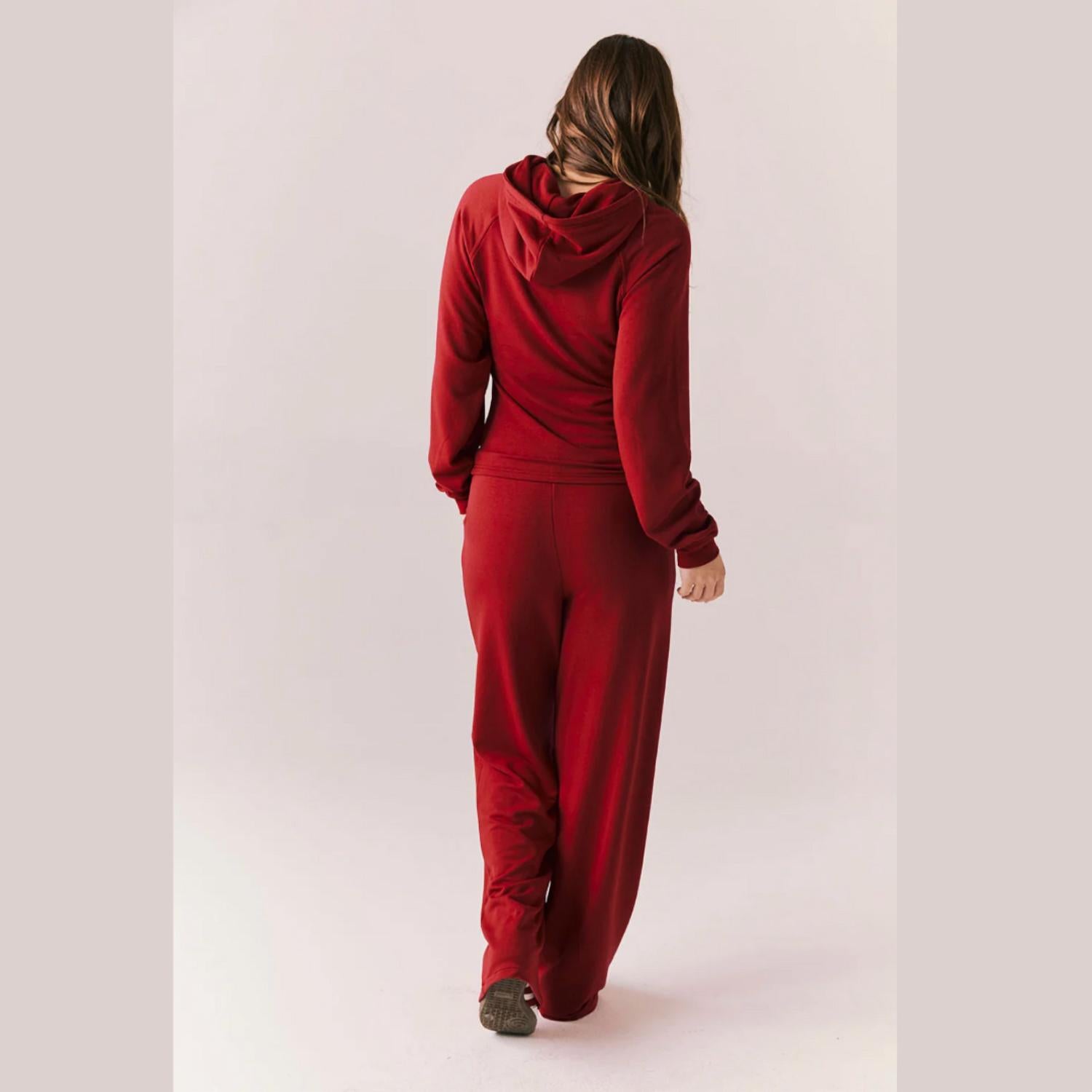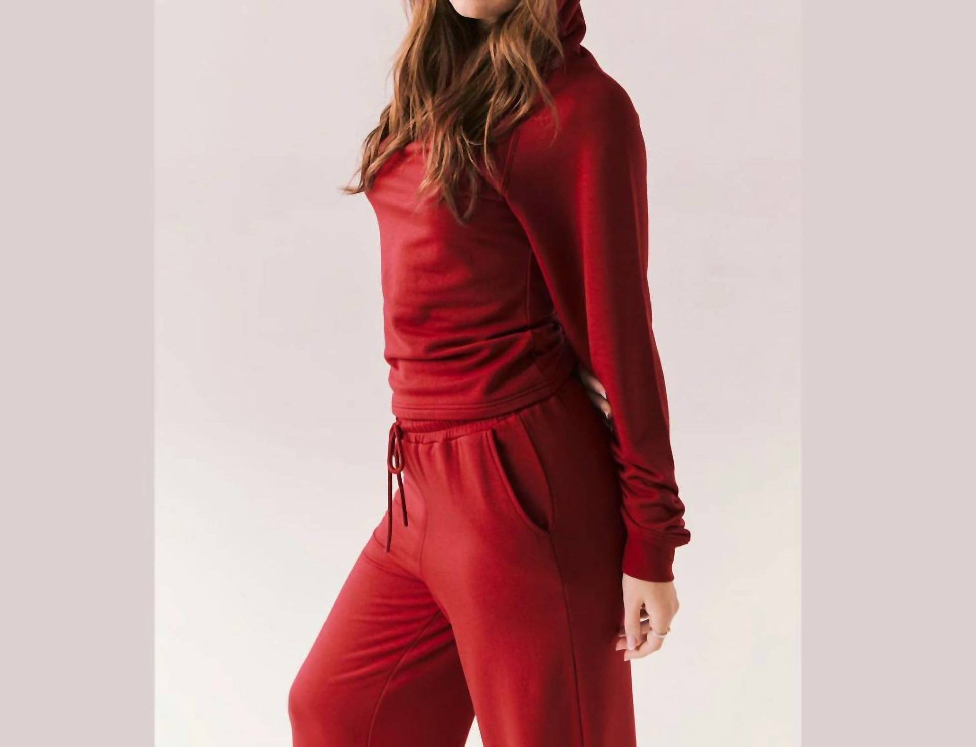 Cozy fabric, impeccable design - Meet the sweatshirt that you'll never want to take off. Introducing the Carmine Pillow Fleece Providence Hoodie by Chaser, crafted for an elevated softness perfect for your off-duty days. With its cozy modal blend, this long sleeve, hooded sweatshirt in a striking Carmine Red promises to be both a statement piece and a layering essential. Composition: 69% Modal, 28% Polyester, 3% Spandex. Closure: Pull-on style. Care: Machine wash. Ideal for adding chic comfort from couch to street.