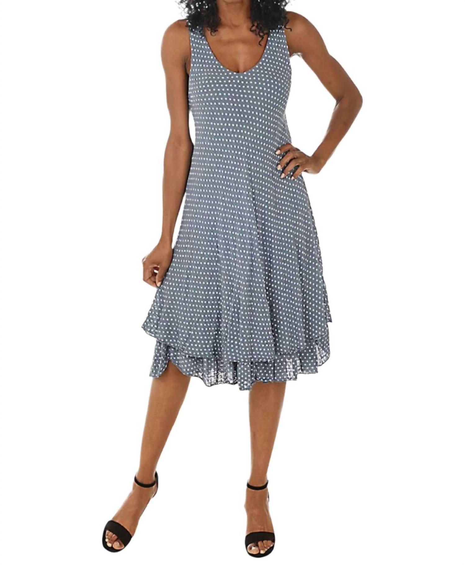 A midi dress so versatile, your options for wearing it are endless. Introducing the Cherish Sleeveless Dress, a stylish choice in gray with a playful polka dot pattern for your summer wardrobe. Made from 100% cotton gauze, this dress features a flattering v-neckline at both the front and back, with a dual-layer construction for a ruffled hem design. The dress measures a center back length of 34 inches and is crafted in Italy, ensuring premium quality. For easy care, simply hand wash and line dry this charming sheath silhouette, perfect for vacation occasions.