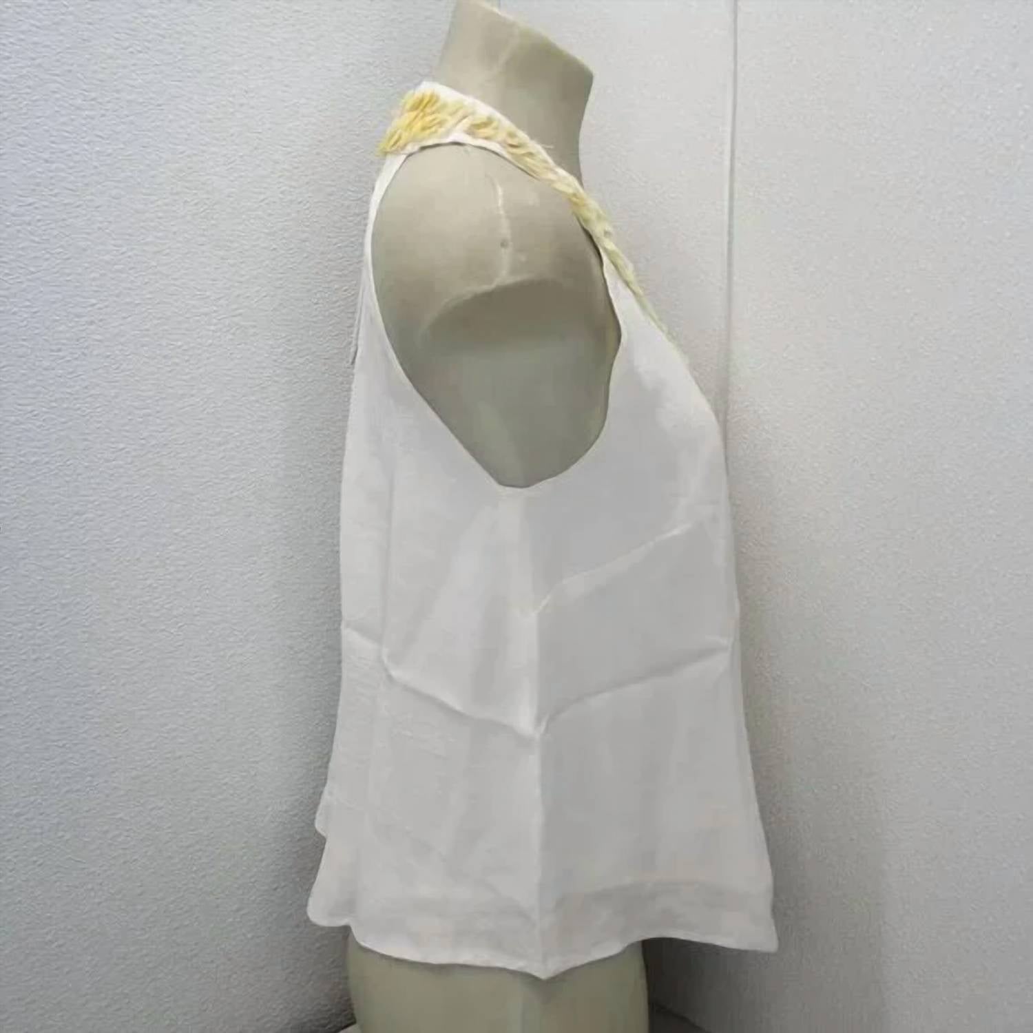 The perfect tank top for those warmer weather seasons. Introducing the Women's V-neck Tank Top by CIEBON, a chic addition to your summer wardrobe with a versatile cream palette. This sleeveless tank features a flattering V-neckline and a relaxed fit, perfect for layering or wearing solo. Crafted from 100% Viscose with a 100% Polyester lining, the lightweight, breathable fabric offers all-day comfort. Designed with a button closure for easy wear, this top is best maintained by dry cleaning.