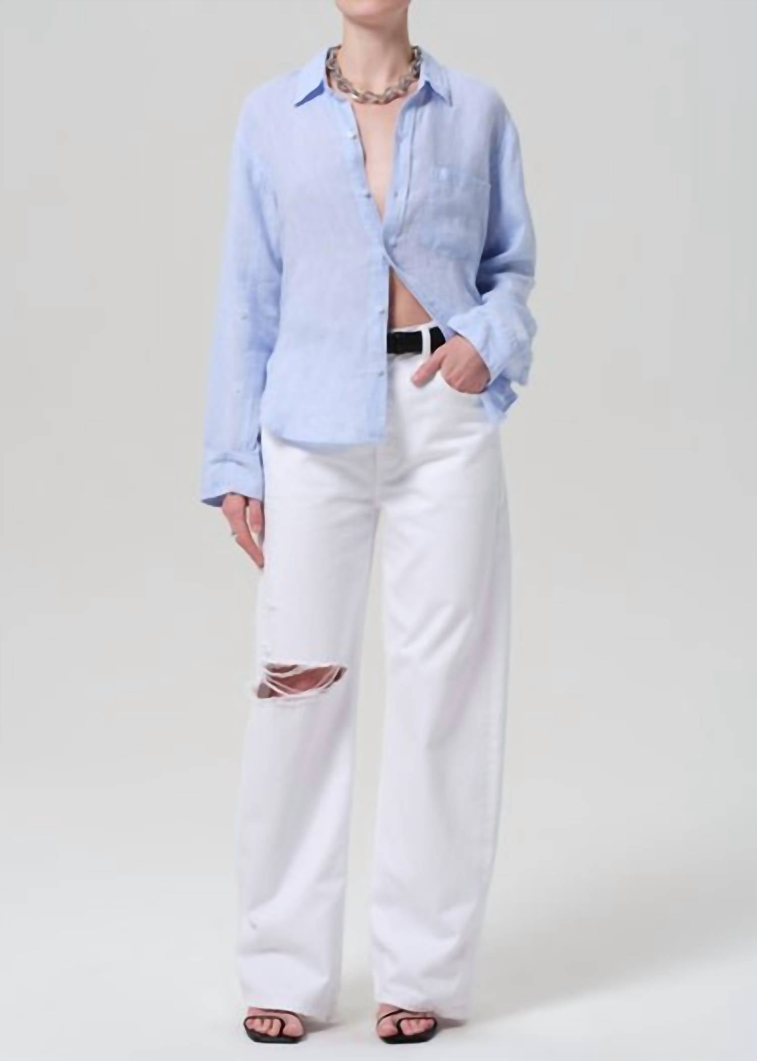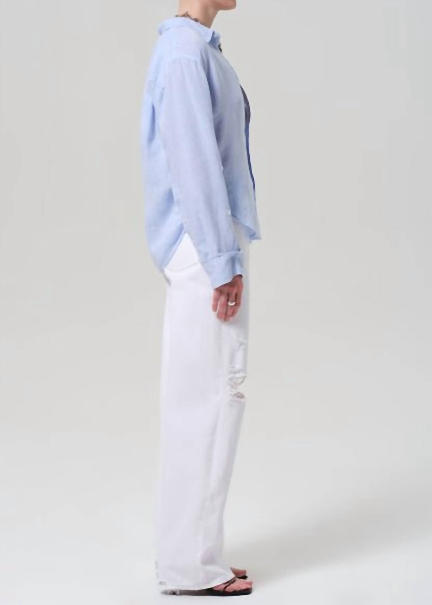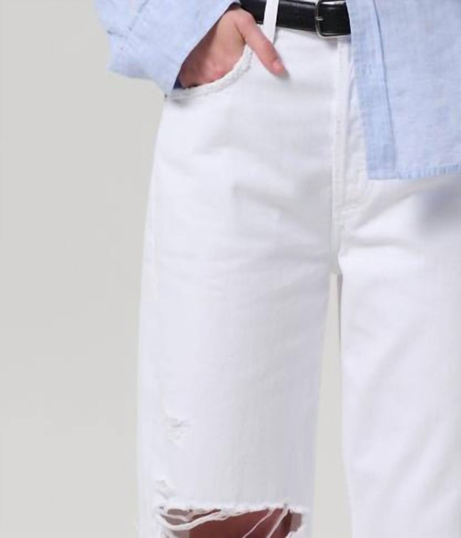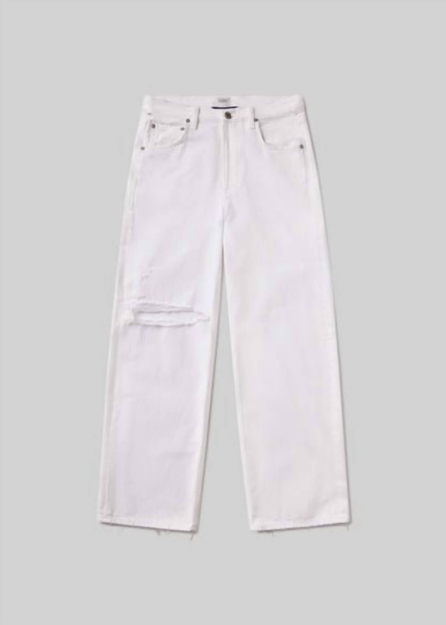 Pair these wide leg jeans with mules, slides or your favorite strappy sandals. Introducing the Ayla Baggy Jean by Citizens of Humanity, a masterful blend of relaxed and refined style in Zinc. Crafted from 100% Cotton, this high-rise jean features a roomy wide-leg design with a rise of 12 3/8" and inseam of 32". Made in Turkey, it has a button closure and a classic, rigid non-stretch denim feel with fashionable destruction at the knee. Care for this chic piece by machine washing inside out and tumble drying low to keep its authentic look intact. Model is 5'10" and wearing a size 27.