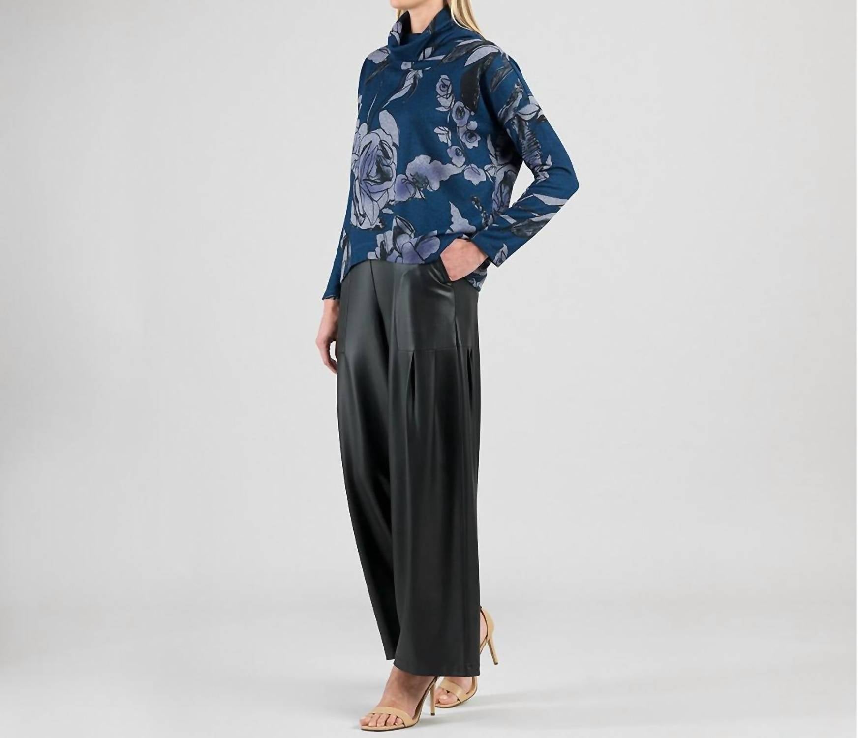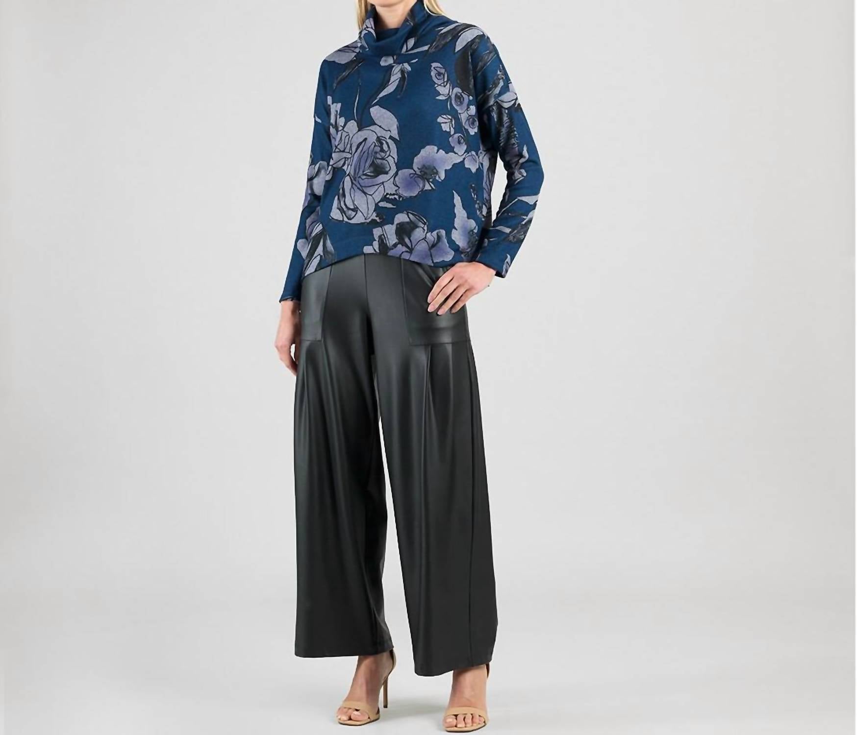 Fit to perfection and effortlessly chic. The Rose Sketch Soft Turtleneck Sweater by Clara Sun Woo is a stunning addition to any wardrobe, designed as wearable art. Featuring long sleeves and a cowl-style turtleneck, this sweater is crafted from a blend of 95% Polyester and 5% Spandex, providing a lightweight sweater knit with a smooth, microfiber-like finish. Made overseas, this unique piece sports a pull-on closure and showcases an artistic print with large-scale roses in navy and black, accented with lavender and gray. Care instructions include machine washing and laying flat to dry, ensuring easy maintenance.