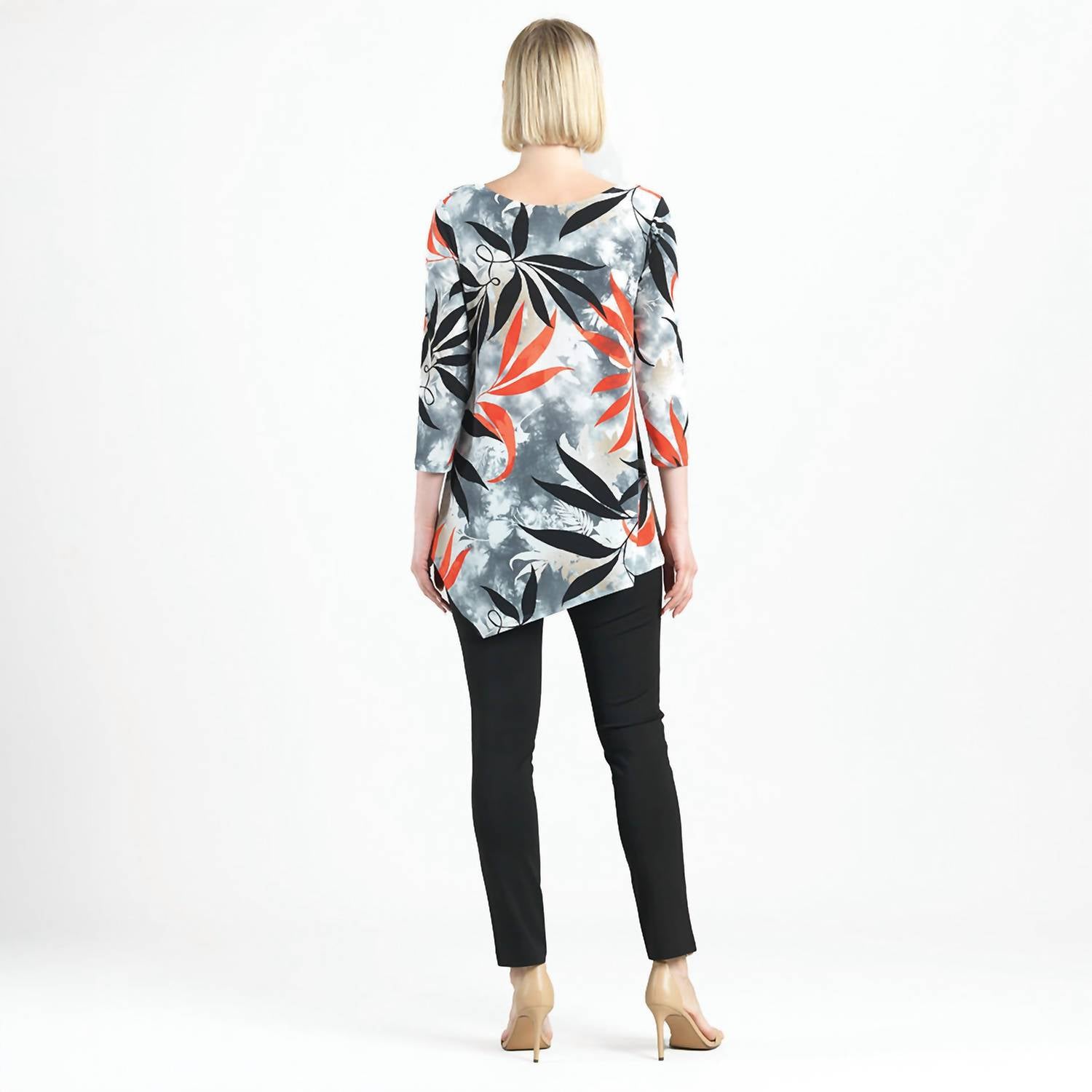 Discover the versatile charm of this tunic blouse, designed with both layering and standalone wear in mind. Its flattering silhouette and stylish details make it a closet essential. Discover the Kerchief Angle Hem Tunic by Clara Sunwoo, a vibrant choice for the boho chic trend in women's summer fashion. This patterned tunic in hues of black, navy, mustard, and brown features a scoopneck and three-quarter sleeves, perfect for vacation styling. Made from polyester with a convenient pull-on closure, it's designed for ease and comfort. Care instructions recommend hand washing and line drying to maintain its quality.