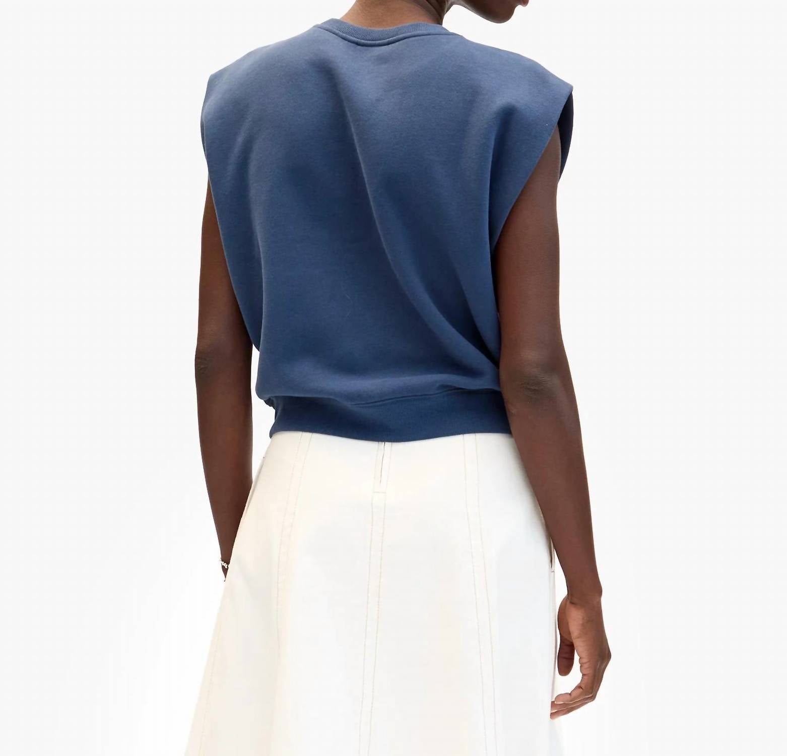 A vest so versatile you can mix and match it with almost any outfit and it will feel brand new every time. Elevate your spring wardrobe with the Clare V. Le Vest in navy, a minimalist piece perfect for any dinner party. This solid vest features chic cap sleeves and adorable gold brass anchor buttons at the shoulder seam, offering a unique touch. Crafted from 100% cotton fleece, it is made in Portugal and designed for easy wear with a pull-on closure. Ideal for the style-conscious woman, this crewneck vest reflects both comfort and sophistication.