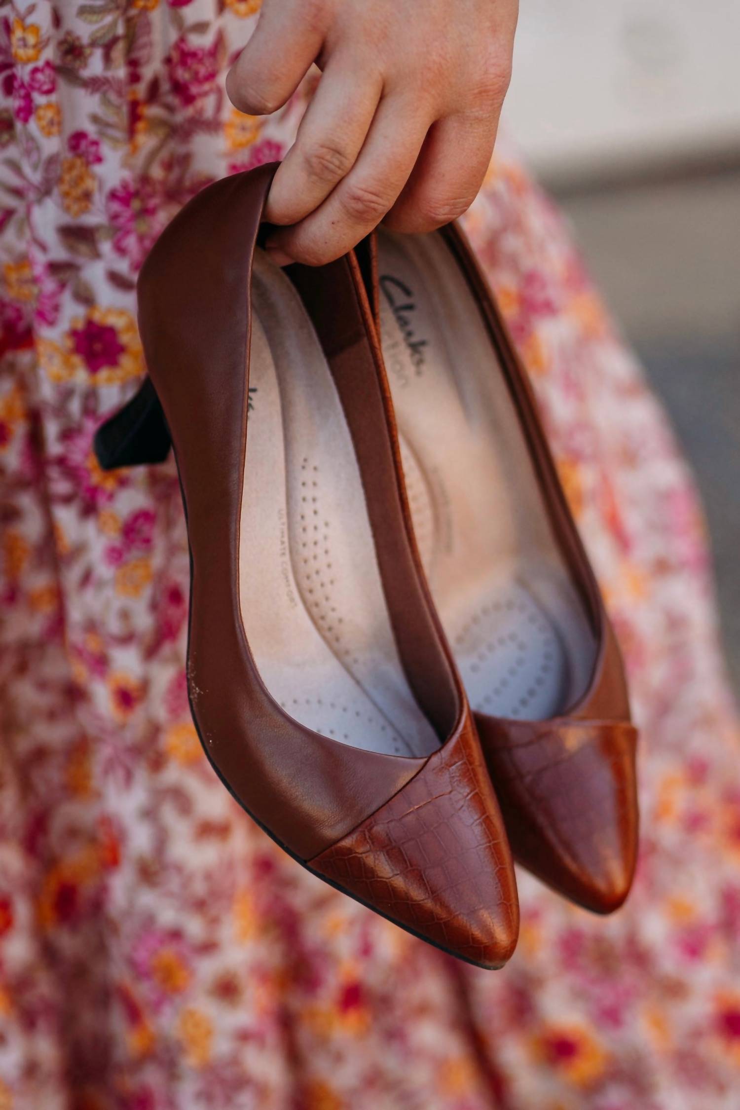 Don't be deceived, these heels are comfy as can be. Step into elegance with the Women's Kataleyna Rose Heels by Clarks, crafted with tan croc leather uppers for a luxurious look. These medium-width heels feature a pointed toe and a stiletto heel, standing at 2.75 inches, perfect for evening events and fall fashion. The design ensures a minimalist yet sophisticated style, complete with a pillowed insole and a super-grippy sole for comfort and stability. Ideal for the refined adult woman seeking a confident and stylish appearance.