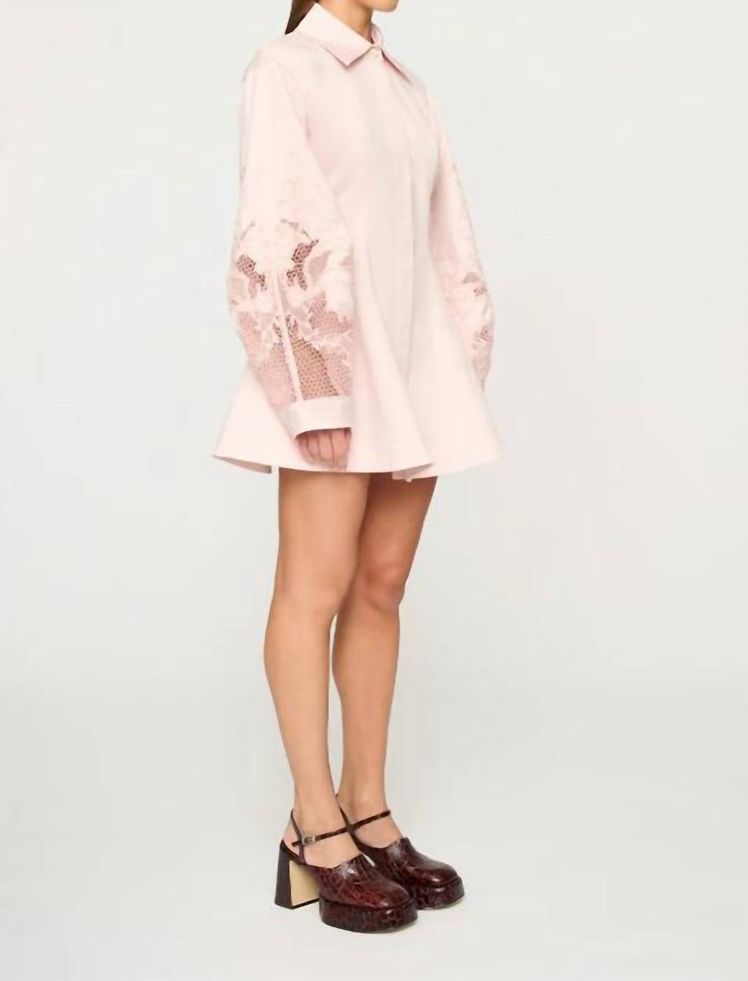 The perfect mini dress for those warmer months. Introducing the Indra Mini Dress by Clea, a sophisticated choice for your holiday party wardrobe. This mini dress comes in white with long cocoon sleeves adorned with embroidery, crafted from 100% cotton sateen for a textured finish. The shirt silhouette features a classic collar and a convenient button closure. Ideal for spring, this dress offers elegance with a modern touch.