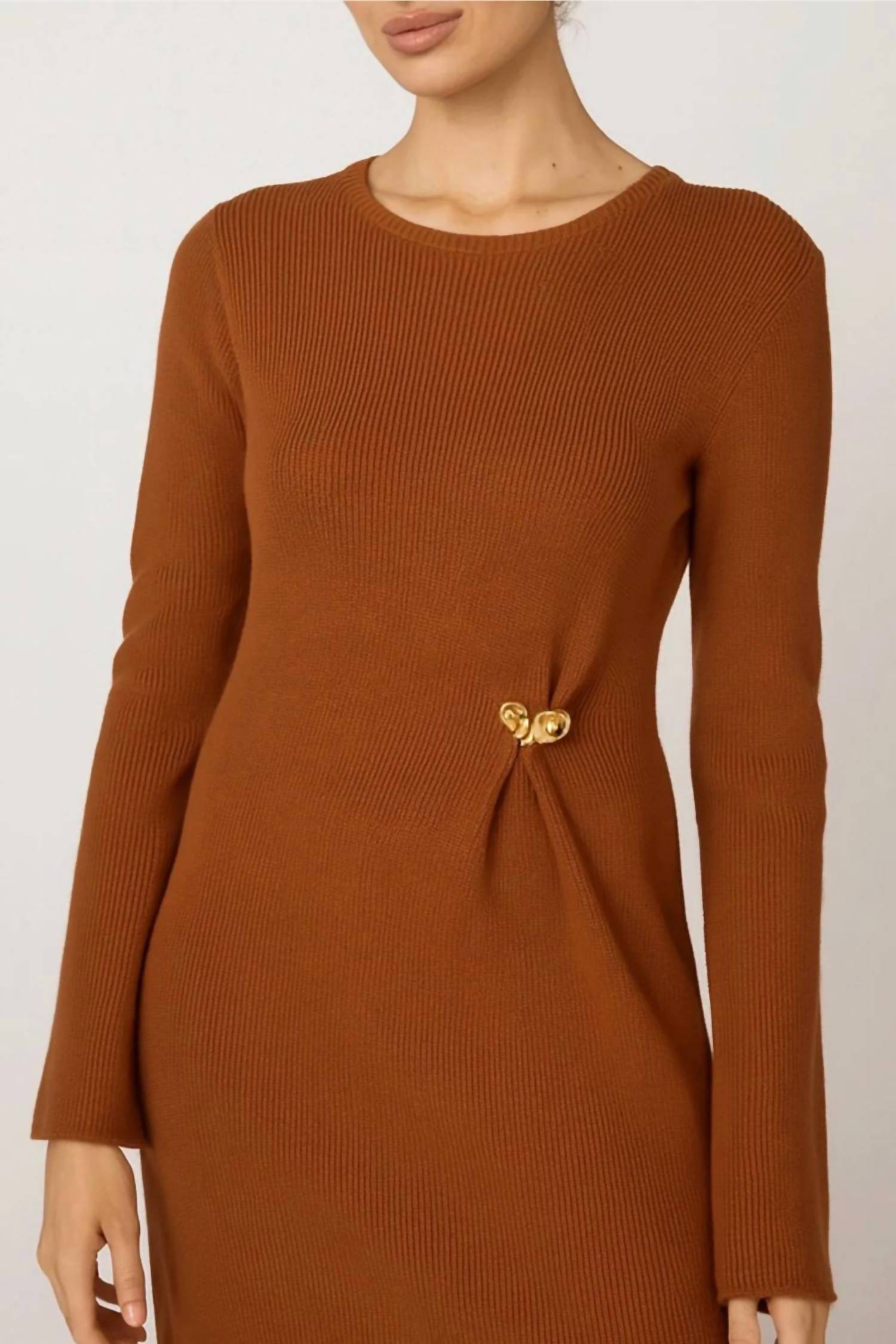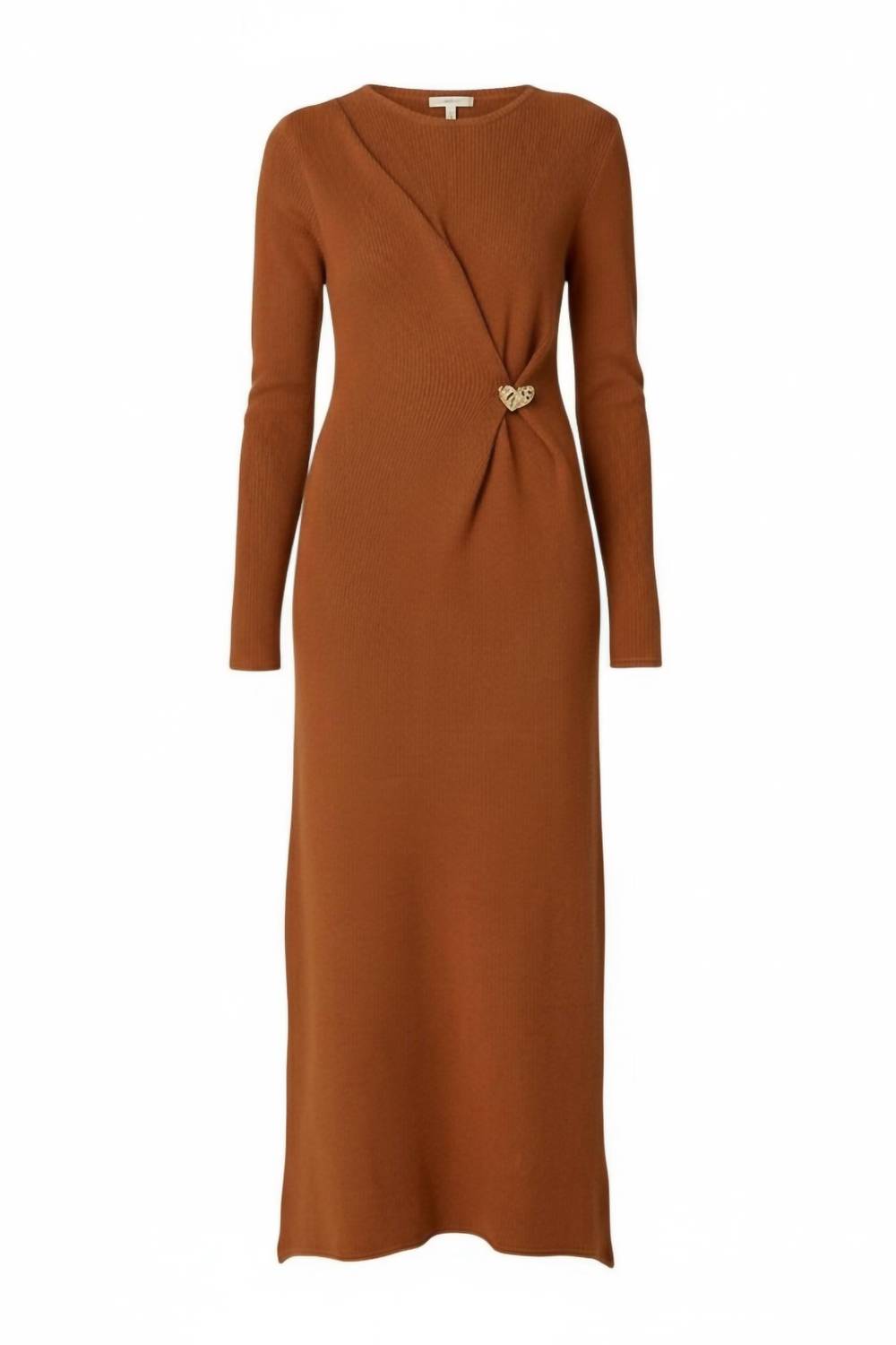 A midi dress so versatile, your options for wearing it are endless. Discover the Hjarta Midi Dress by Cleobella, a chic piece perfect for fall gatherings. This dress boasts elegant long sleeves and a flattering crewneck, crafted from 100% organic cotton, showcasing a commitment to sustainability. Handcrafted in India, it features a pull-on closure and comes in a solid clay color with unique heart charm details for a touch of flair. Please hand wash gently to maintain its exquisite craftsmanship.