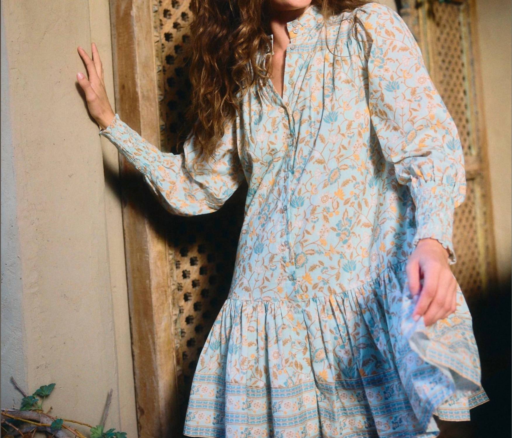 The perfect mini dress for those warmer months. Introducing the Karli Mini Dress by Cleobella, a stunning piece in the playful Kaia Print designed for those who appreciate artful elegance. This A-line silhouette features long sleeves with elasticated openings and a structured bodice with smocking at the back for unbeatable comfort. Crafted from 100% GOTS-certified organic cotton, this dress is ethically handmade in India and includes pockets for added practicality. Closure: Button closure. Care: Machine wash, line dry. A perfect choice for those celebrating occasions with a touch of Boho Chic flair.