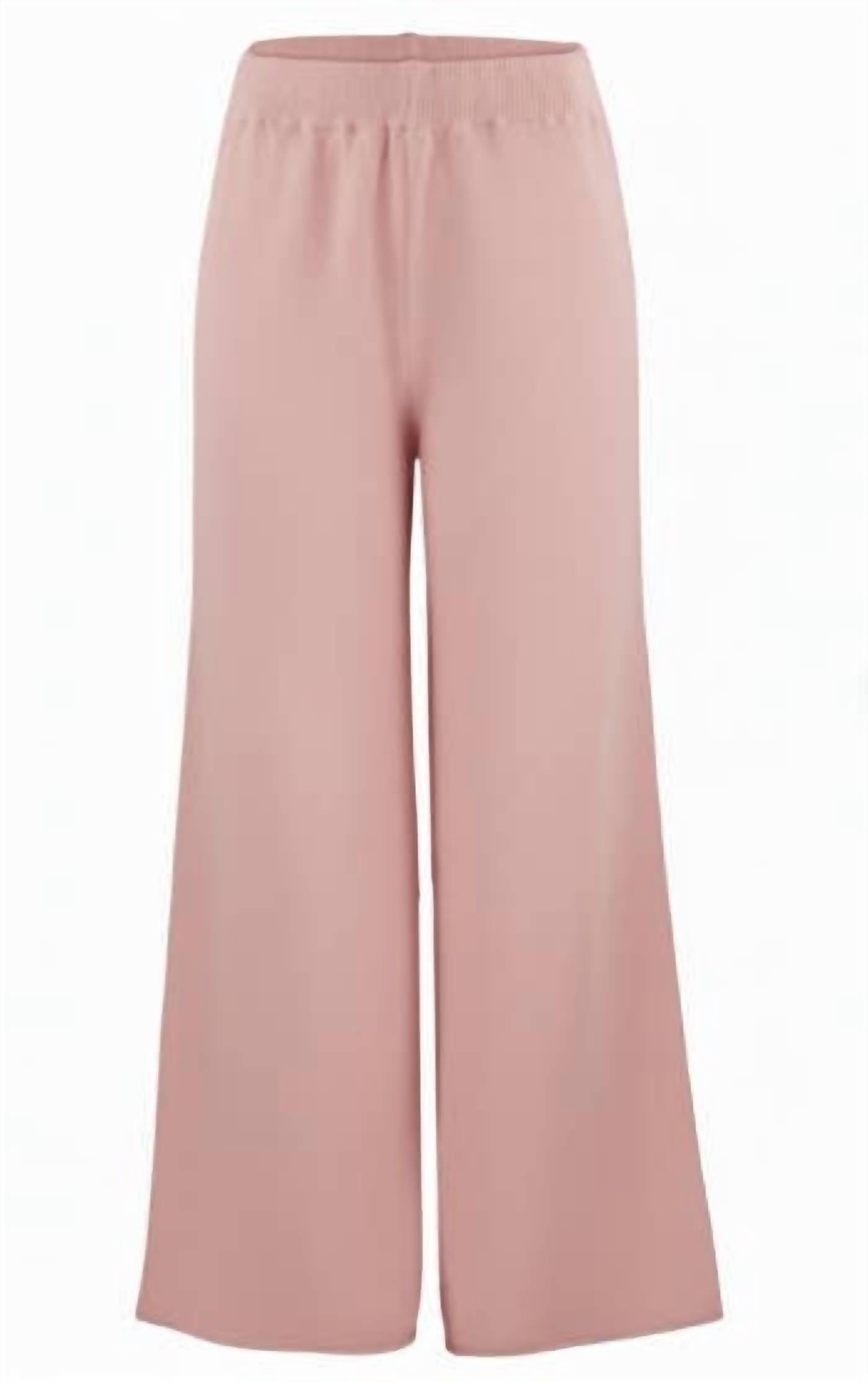 The perfect pant for running around town and looking cool while doing it. Introducing the Cleo Knit Pants by Cobblestone Living, your ideal travel companion in elegant rose. Crafted from a viscose blend, these mid-rise pants feature a relaxed fit with a wide leg for ultimate comfort. With a pull-on closure, they're easy to wear and perfect for any spring adventure. Designed exclusively for women, care for these pants by hand washing and laying them flat to dry.