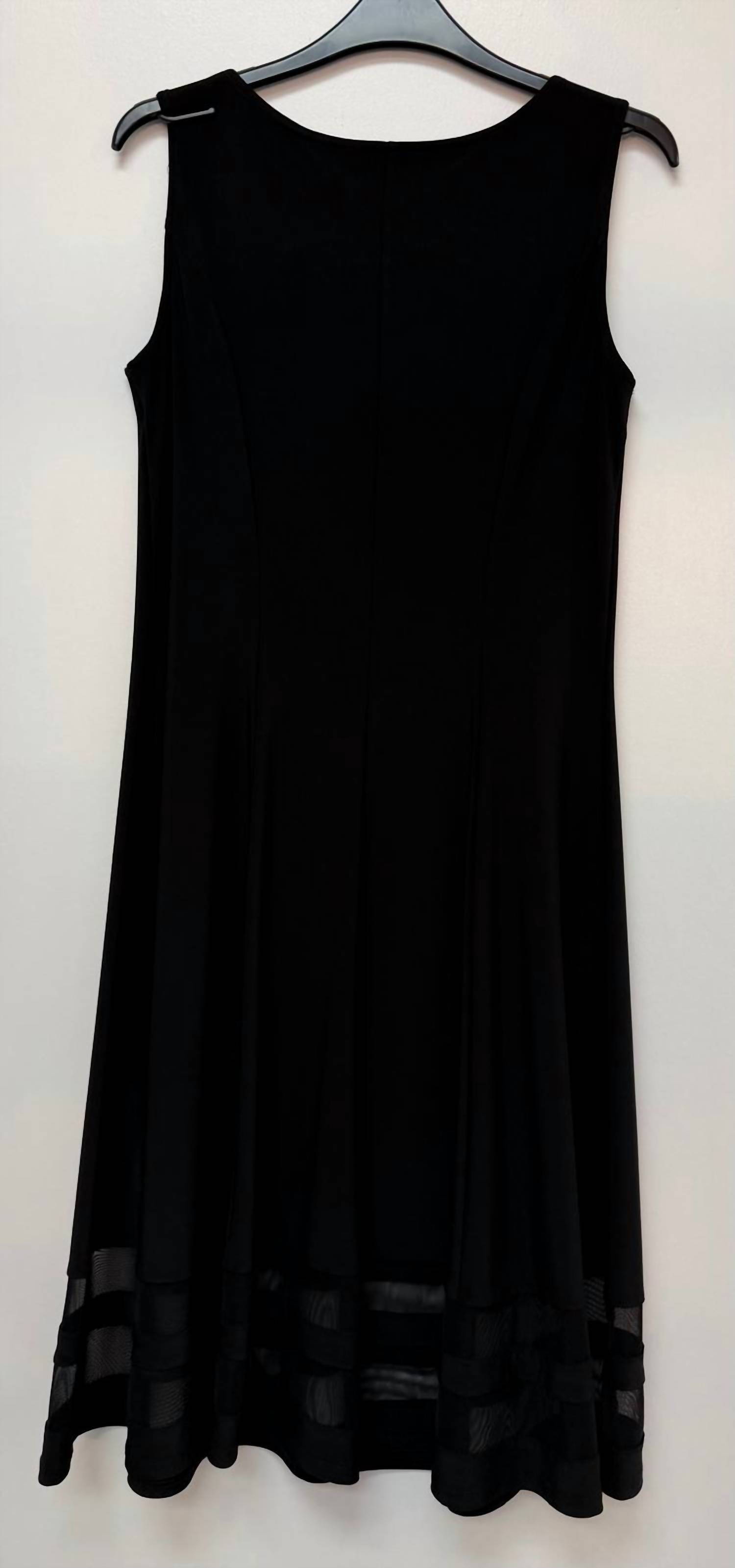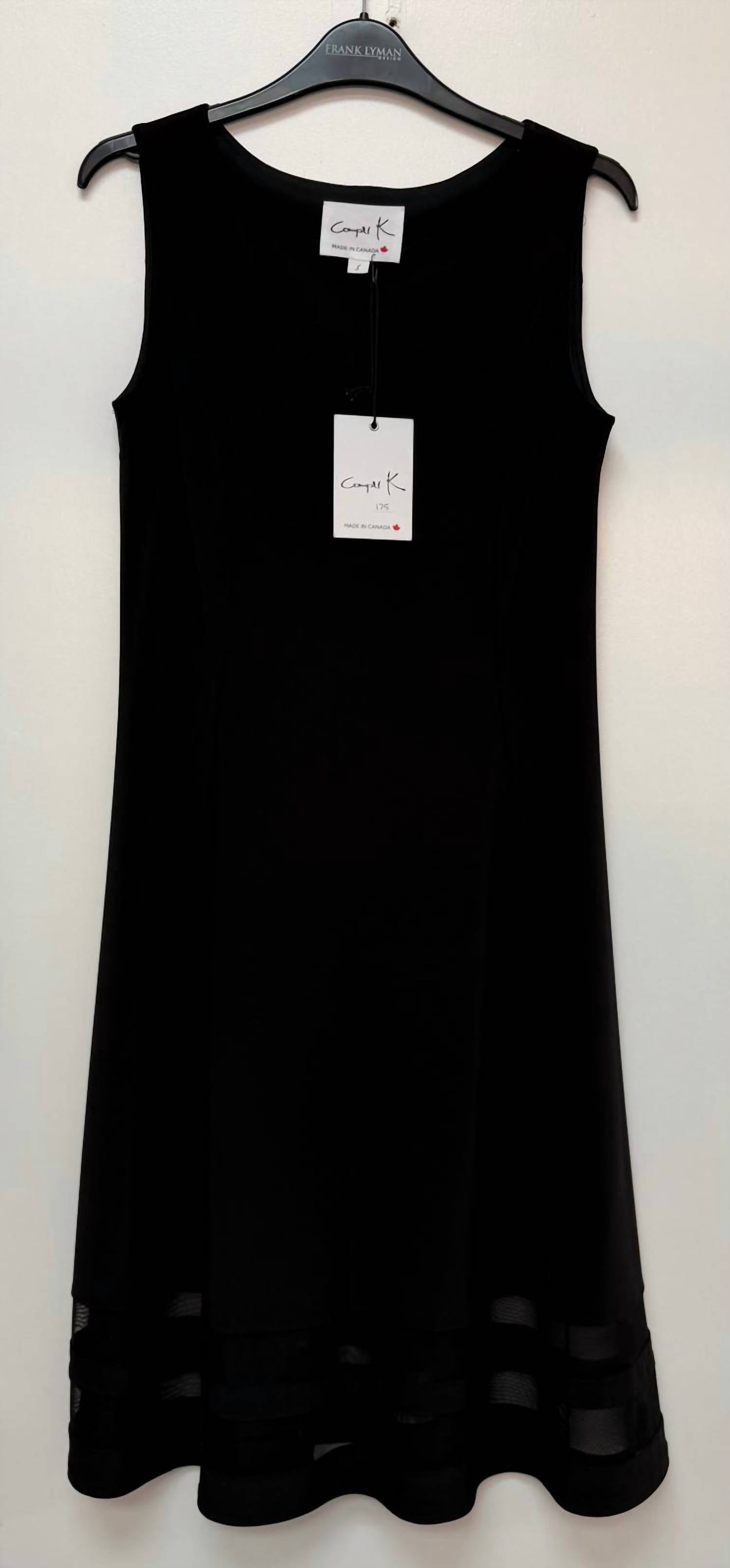 The perfect length dress does exist. Introducing the Sheer Illusion Midi Dress by Compli K, a sophisticated choice for holiday parties. This sleeveless shift dress is crafted from lightweight polyester and features a minimalist solid black design. Made in Canada, it offers easy wear with a convenient pull-on closure. Perfect for a Thanksgiving gathering, this dress combines elegance with the comfort of a classic crewneck.