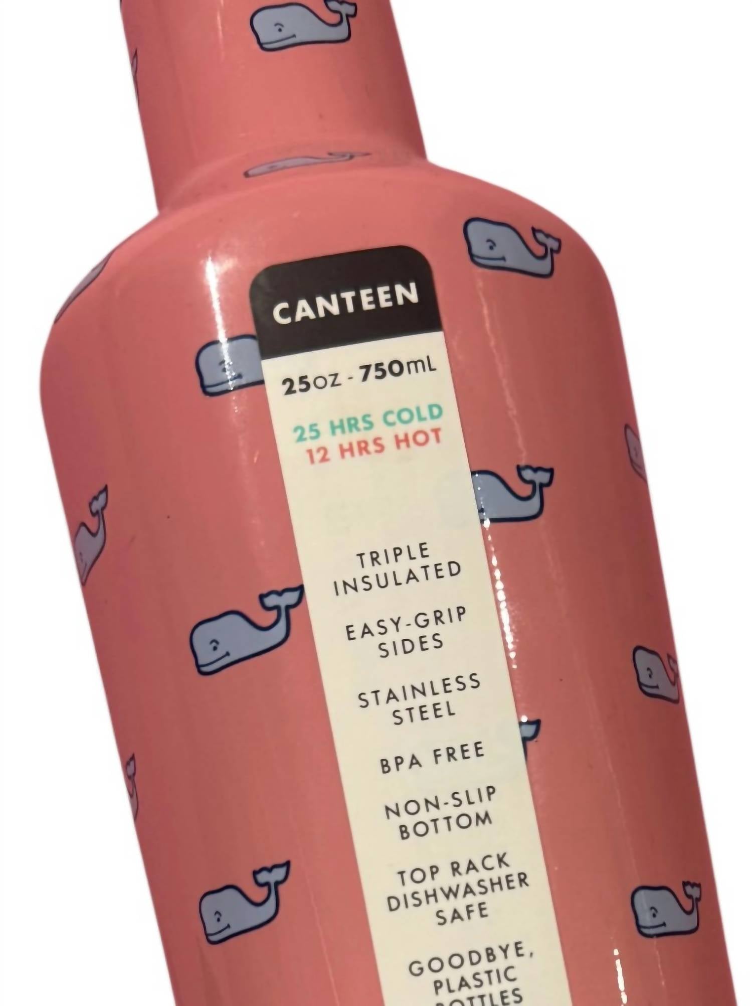 Meet the CORKCICLE Women's 25oz Canteen in the vibrant Vineyard Vines Whales Repeat colorway, combining style and functionality. Designed for women on the go, this canteen boasts a generous 25oz capacity, perfect for staying hydrated throughout the day. Ideal for both casual outings and rigorous adventures, this canteen promises both chic appeal and practicality. The design reflects the perfect blend of aesthetic and efficiency.