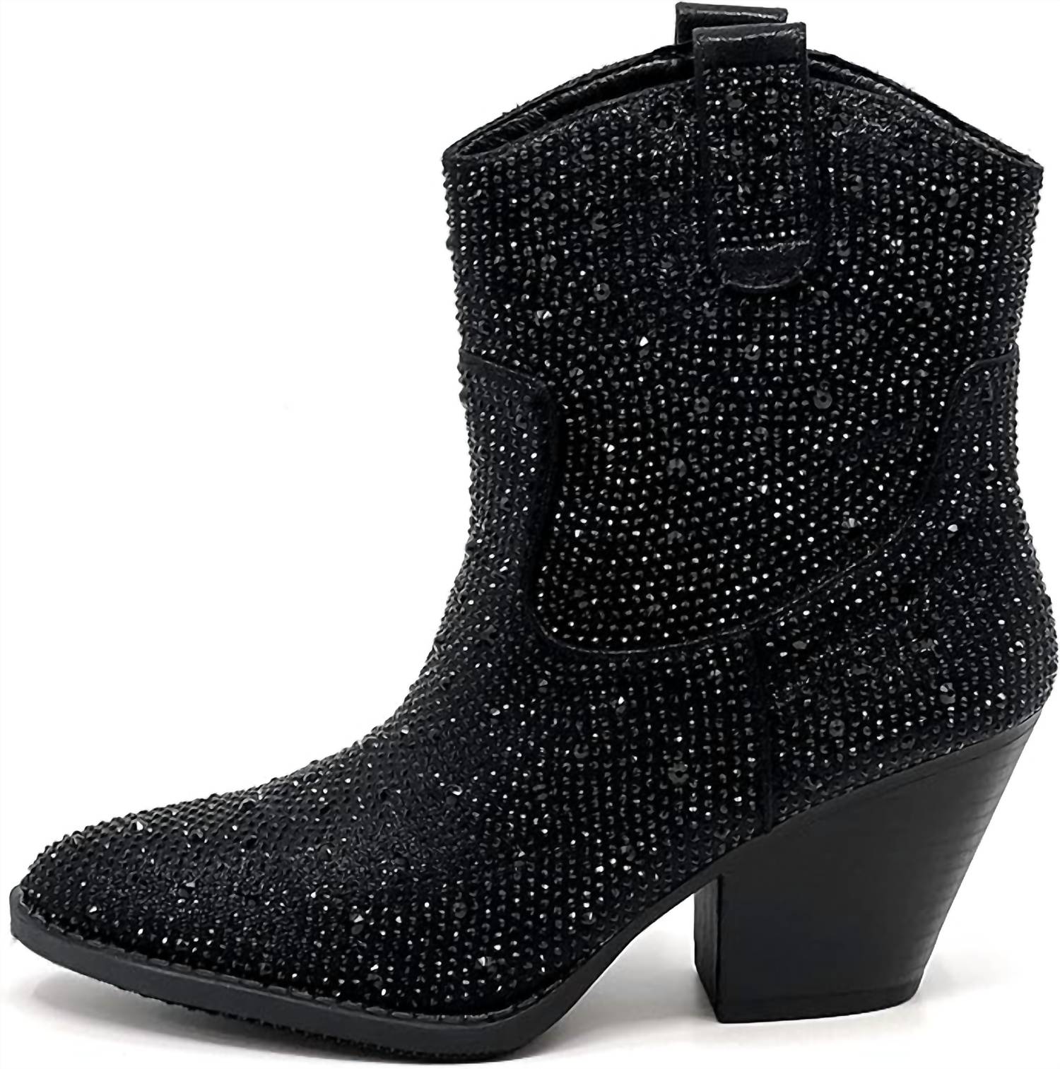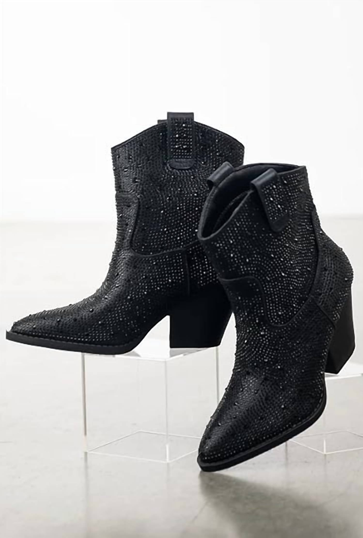 Corkys Footwear introduces the Women's Rhinestone Block Ankle Bootie, a stylish choice for celebrating special moments. In sleek black, these booties feature a pointed toe and a chic block heel with a low height of 1 1/4" to 2", making them both fashionable and comfortable. Perfect for anniversary occasions, these booties are designed with a focus on adult women and the refreshing spirit of spring.