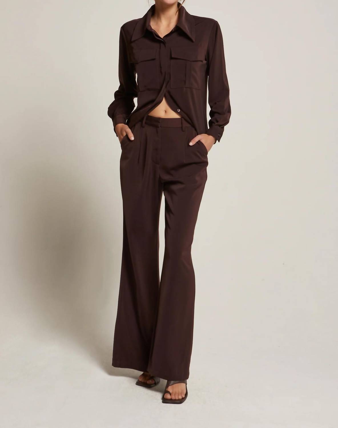 A versatile blouse that works from desk to dinner! Made with a buttery mid-weight woven material, the Neveah Cargo Button up Shirt features classic collared neckline, hidden front button closure, and front cargo pocket with flap.