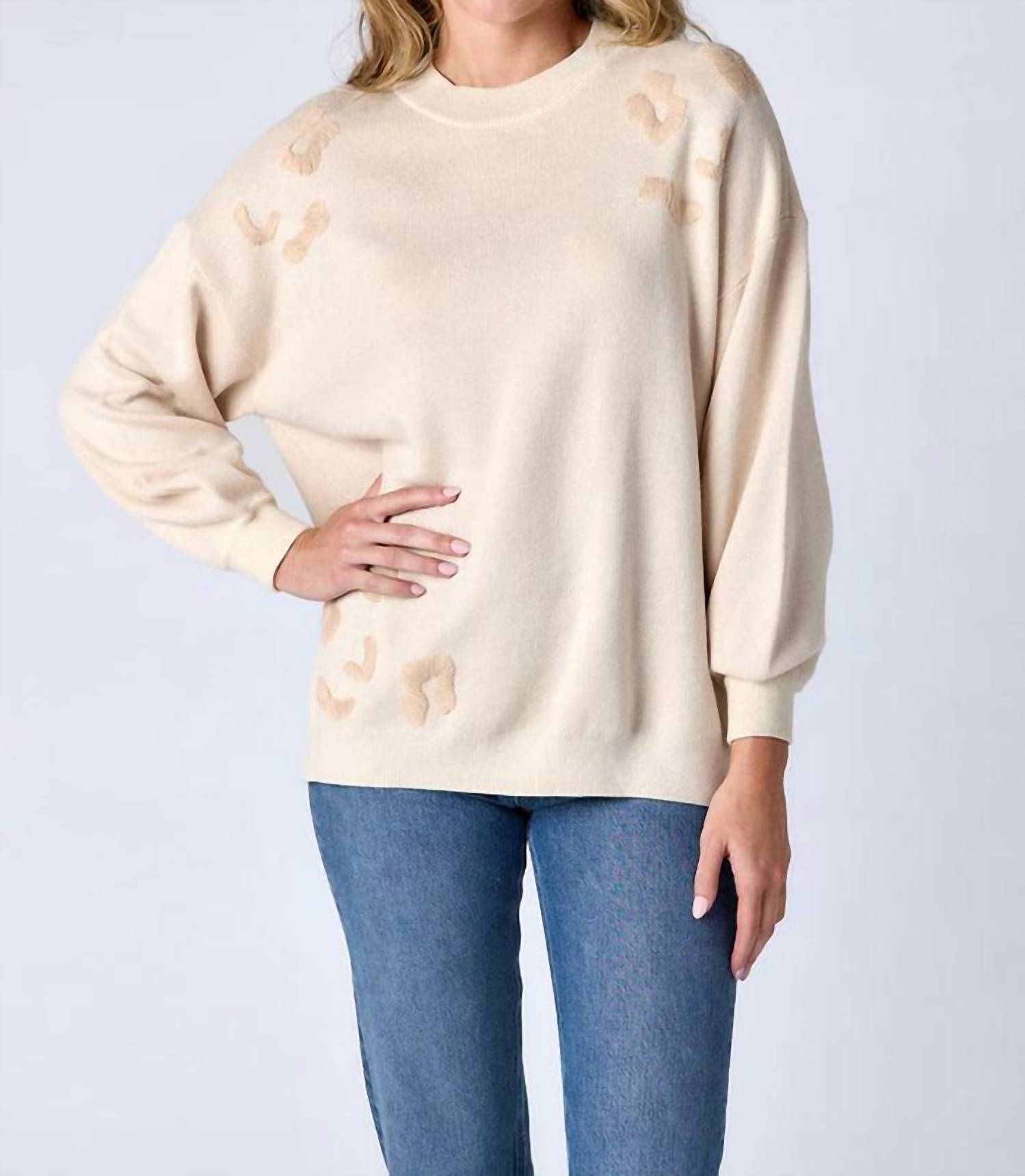 Stay warm and stylish in this versatile and effortlessly cool knitwear staple. Wear it alone or layered, it's the perfect sweater for the season and you'll wish you had it in every color. The Maxton Sweater by Crosby by Mollie Burch is designed to keep you effortlessly chic with its eye-catching cream leopard pattern. This long sleeve piece is a pull-on style that offers a comfortable fit for any occasion. Highlighting a classic crewneck, it’s perfect for the minimalist and travel-ready wardrobe. Enjoy its durability and warmth this fall with no need for fussy care instructions.