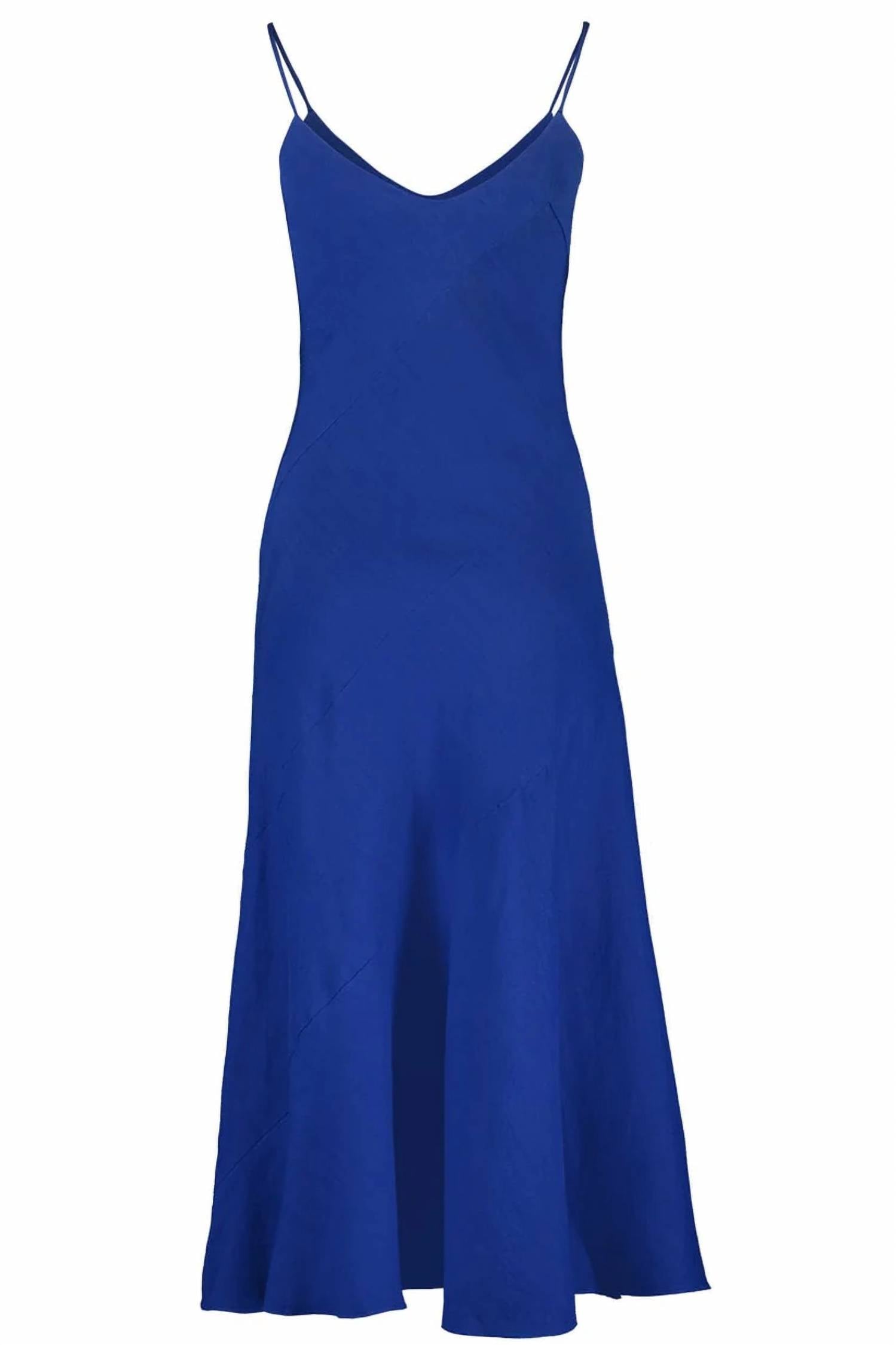 A midi dress so versatile, your options for wearing it are endless. Discover the Veda Midi Dress by Cult Gaia, a stunning piece for your summer wardrobe in a captivating Persian Blue hue. This dress features spaghetti straps and a flattering fit and flare silhouette with an elegant V-neckline. Crafted from a linen blend comprising 51% Linen, 47% Rayon, and 2% Spandex, it offers a medium weight that beautifully drapes while staying breathable. Made in China with a convenient side zipper closure, it is ideal for a dinner party or Valentine's Day affair. Please dry clean only.