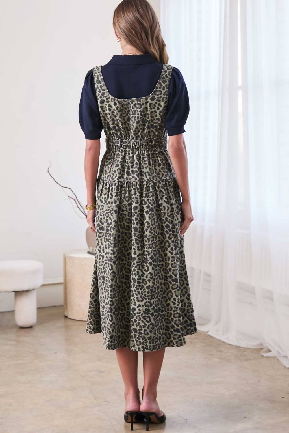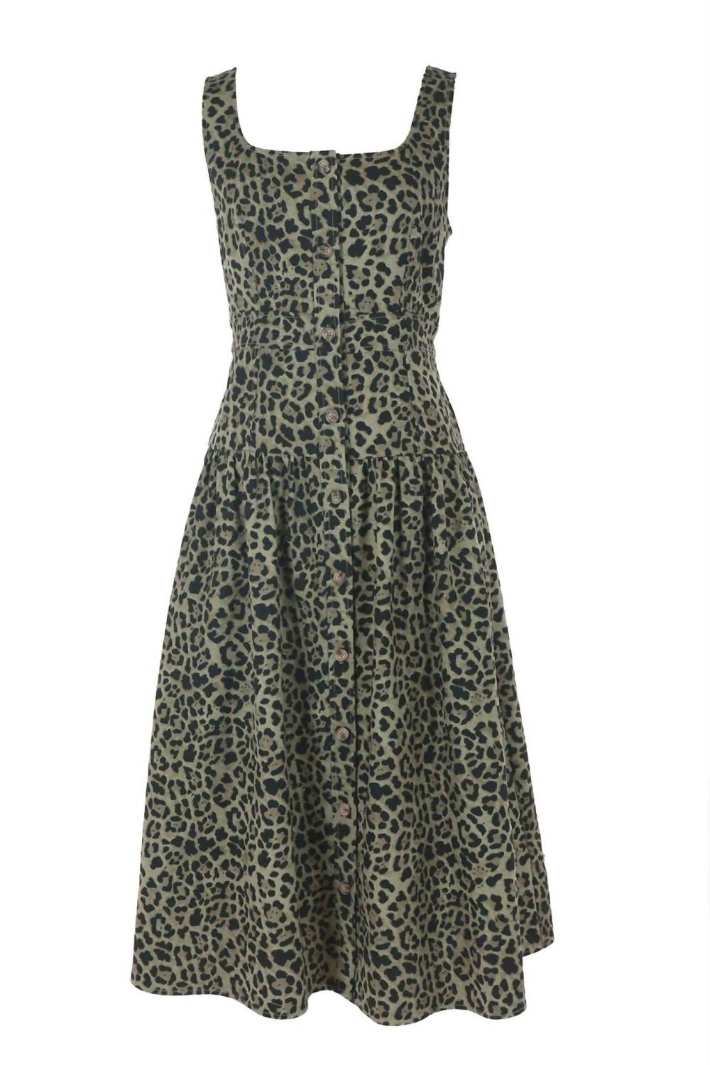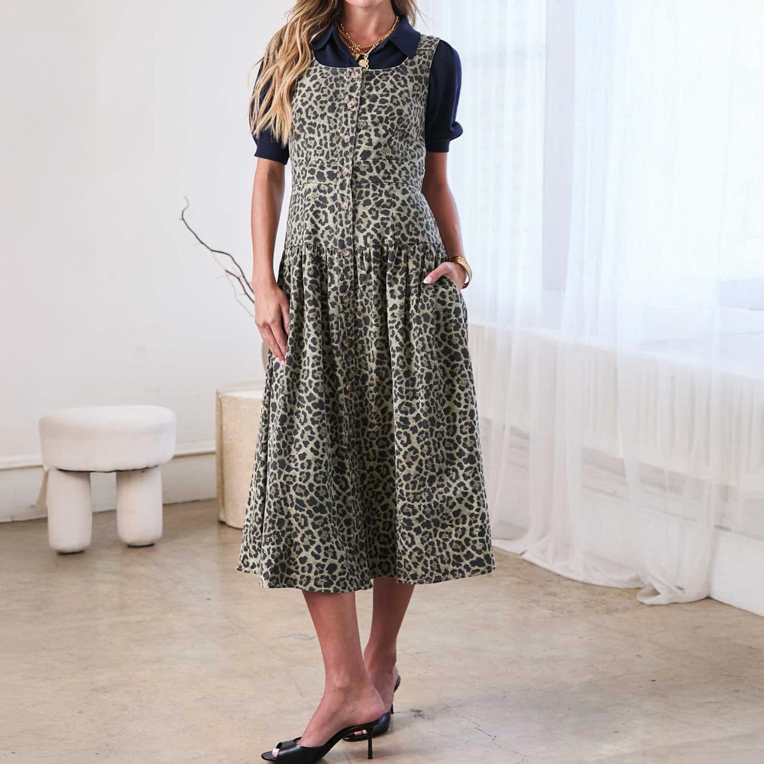 Just add slides or mules and you are good to go. Unveil a chic holiday ensemble with the Button Front Sleeveless Midi Dress by Current Air, showcasing a striking leopard print in a flattering fit and flare silhouette. The dress's sleeveless design and square neckline deliver a cool, polished look, perfect for warm summer days or layered for 90s-inspired 4th of July festivities. Crafted from 100% cotton, its lightweight fabric ensures comfort, while the button closure provides a structured touch. Care is straightforward with machine wash and line dry instructions, making it a stylish yet practical choice for your summer wardrobe.