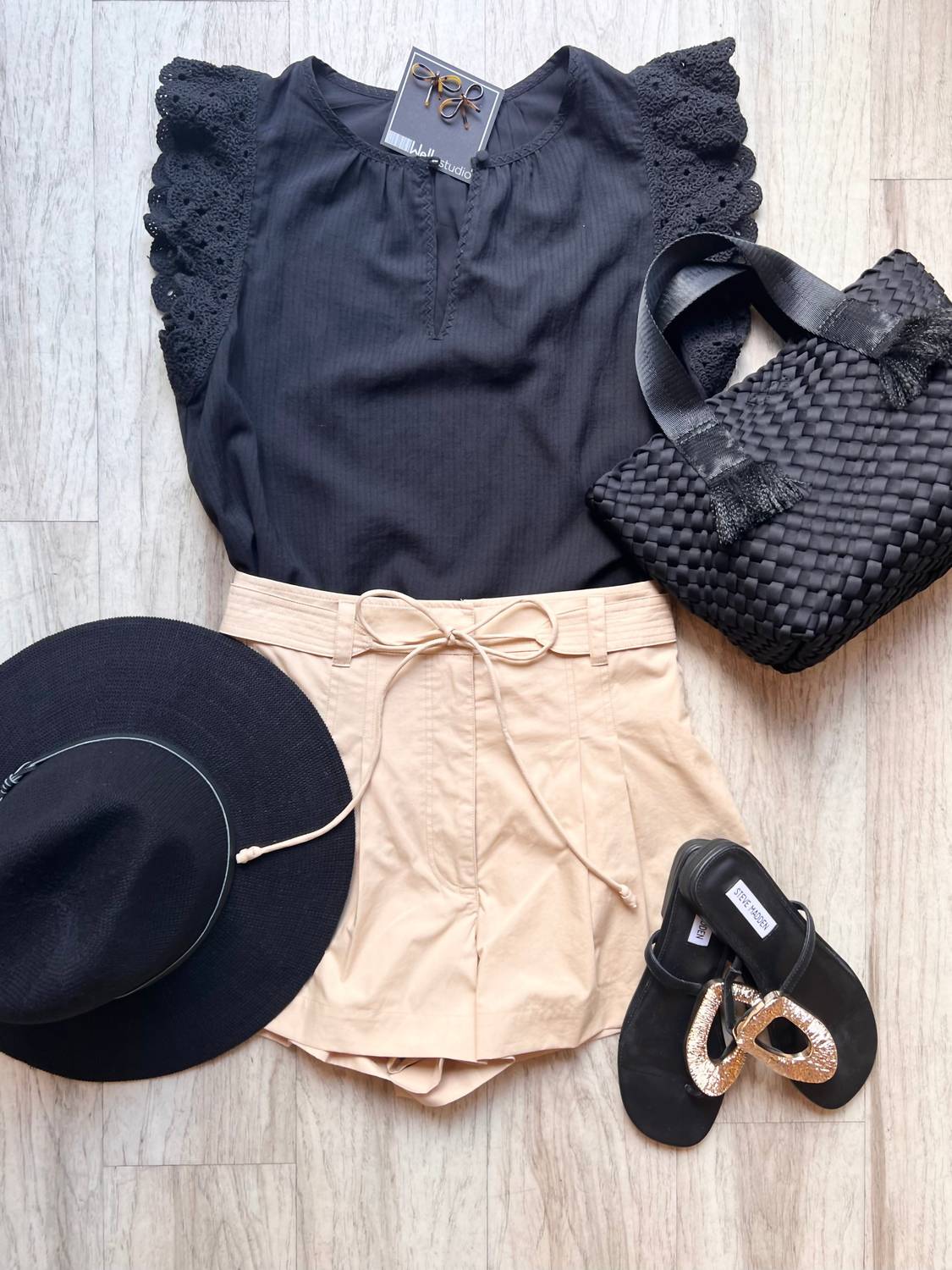 A timeless blouse that will never go out of style. Discover the Crochet Sleeve Top by Current Air, a minimalist women's blouse in timeless black. Featuring cap sleeves and a V-neck, this solid-patterned top is perfect for summer styling. Enjoy easy maintenance with machine wash care instructions. Embrace a polished, pocket-free design ideal for versatile wear.