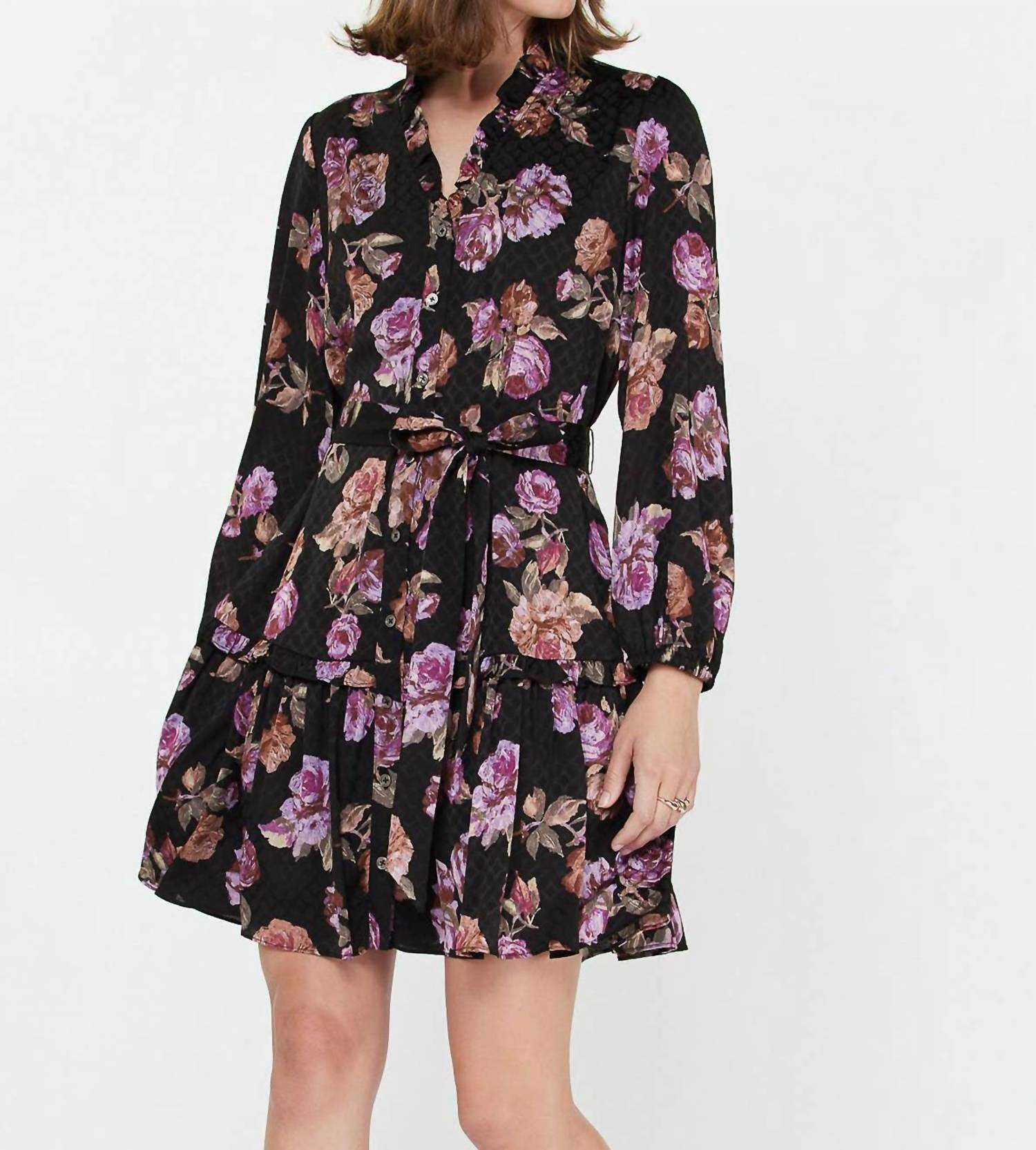 A flattering yet comfortable dress you'll be reaching for season after season. Embrace the essence of spring with the Maia Long Sleeve Floral Dress by Current Air, a charming black piece designed for effortless elegance. Crafted from 100% Polyester, this mini dress features a ruffled V-neckline, perfect for playful daytime adventures or dinner parties. The hook and eye closure accentuates the shirt dress silhouette with a self-tie waist for a flattering fit. For care, gently hand wash to keep it looking its best.