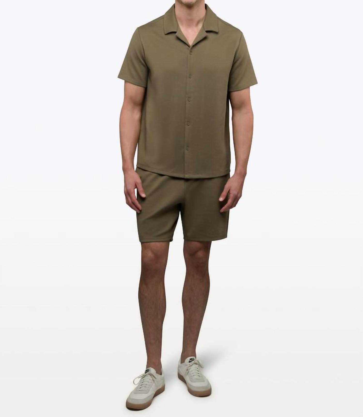 Introducing the Elevate Pique Short by CUTS, designed for men seeking style and comfort in Bay Leaf. These solid pattern hybrid shorts are perfect for your summer vacation wardrobe and feature a convenient pull-on closure along with practical pockets. Ideal for effortless dressing, this versatile piece pairs well with a variety of tops. Care instructions are not provided.