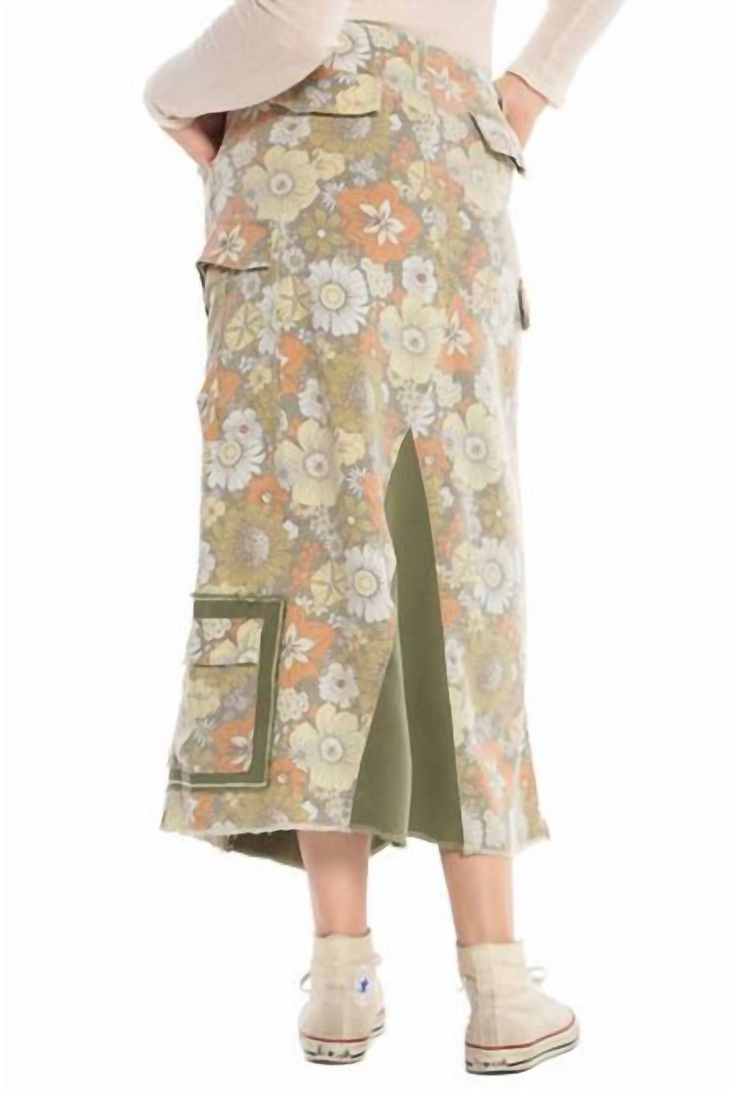 Tuck in your favorite tee for a more casual yet feminine look. Presenting the Military Maxi Skirt by Danang, a standout piece in the Flower Power pattern tailored for a chic streetwear look. This long skirt features stripe details and is made from 100% silk, offering a luxurious drape. The button closure adds a touch of elegance, while pockets provide practicality. Care: Hand wash and line dry. Model is 5'10" and wearing size S.
