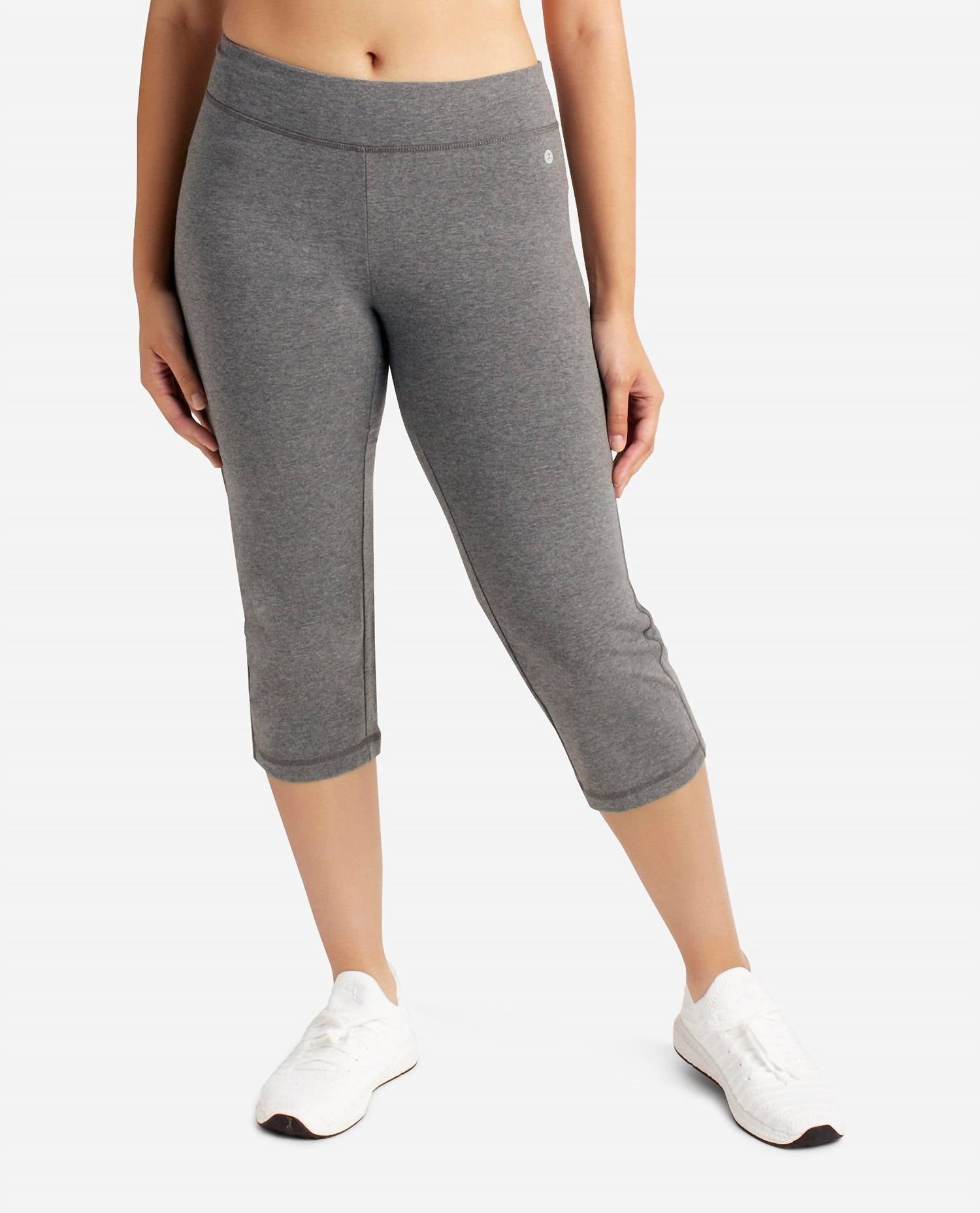 Wear these adorable capri pants with slides or cute flats for an effortlessly cool look. Introducing the Everyday Basic Capri Pants by Danskin, a must-have for your active wardrobe in Charcoal Grey Heather. Designed with a mid-rise and forward side seam, these capri-length pants feature a slim fit and skinny leg. Made from a 92% cotton and 8% spandex blend, they offer comfort and flexibility. Closure: Pull on. Care: Machine wash and tumble dry. Ideal for fitness workouts, perfect for the summer season with an athleisure trend focus.