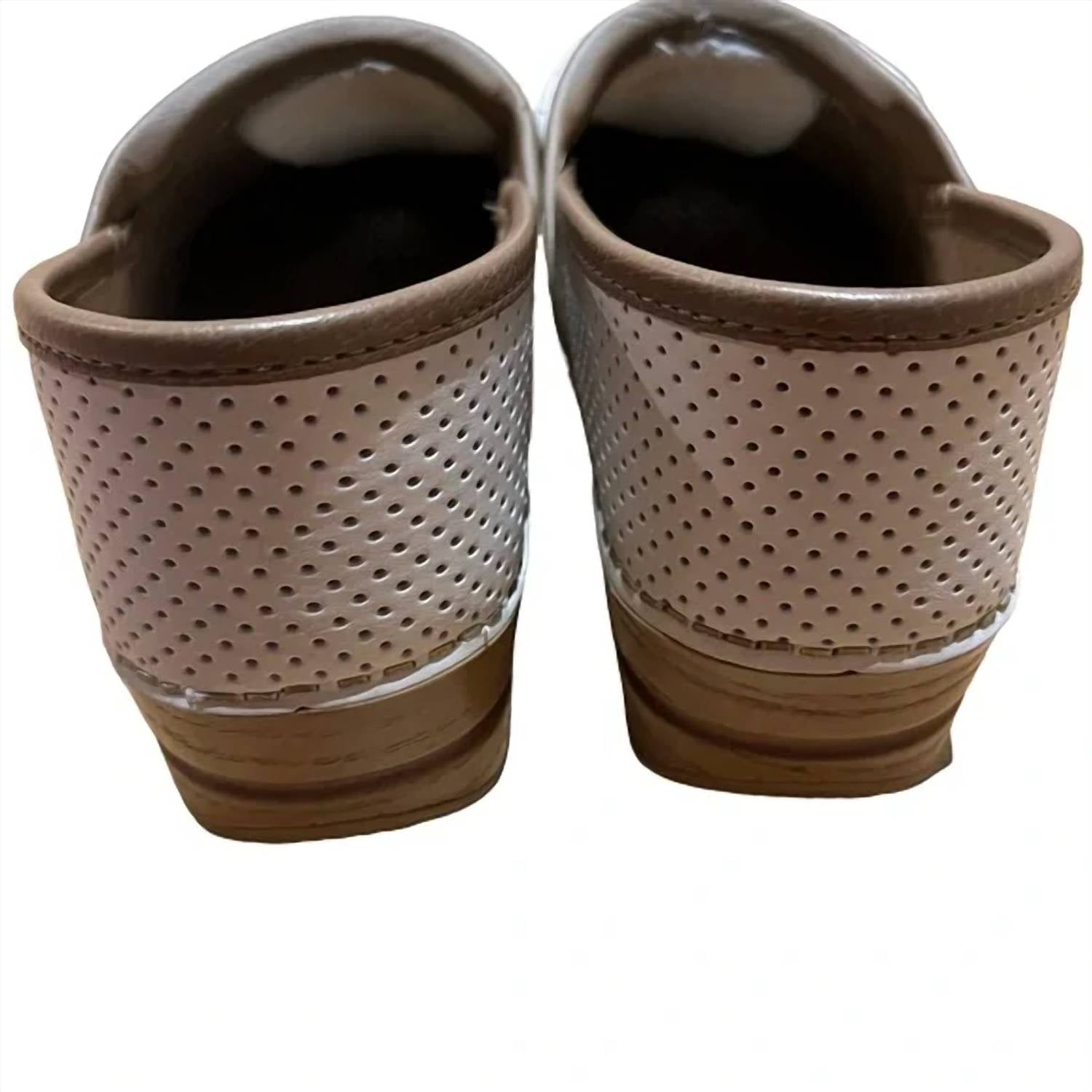 Slip them on and go! The Women's Perforated Pro Full Grain Clog by Dansko is a perfect blend of comfort and durability, available in elegant Ivory. These clogs feature a roomy reinforced round toe box for added protection and a leather sockliner wrapped around synthetic foam to ensure your feet stay dry. The platform heel with a 1.75-inch low height provides support, while the protective TPU heel counter enhances lateral stability. Ideal for standing or walking all day, the PU inner frame and outsole offer impressive shock absorption and flexibility.