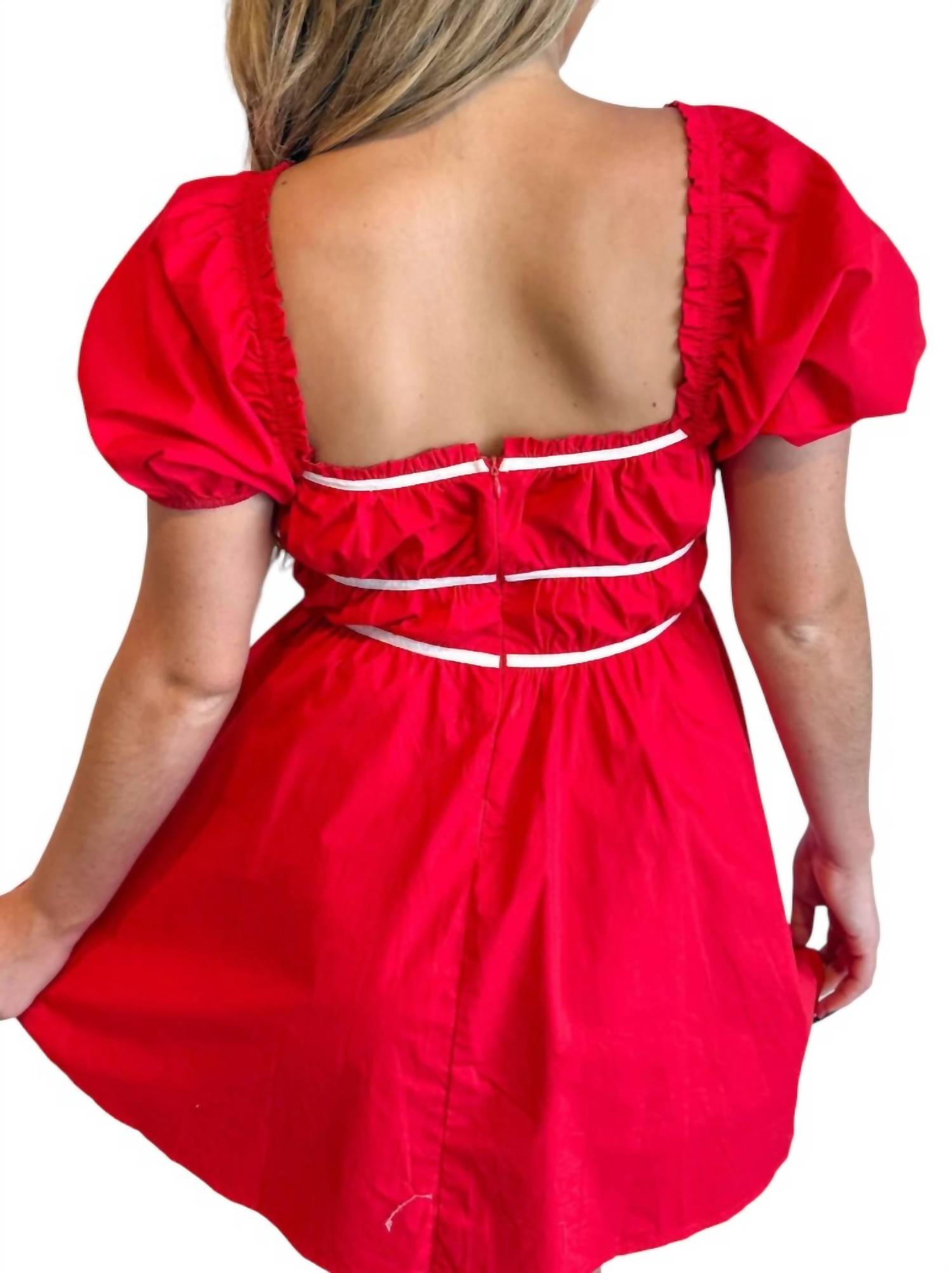 A short and breezy dress for those warmer days. Elevate your summer wardrobe with the Hot Streak Mini Dress by day + moon, crafted for bold statement-makers. This vibrant red dress features short sleeves and a flattering square neckline, embodying the perfect blend of carefree charm and sophistication. Made from 100% cotton, it ensures lightweight and breathable comfort throughout your warm-weather adventures. With a playful A-line silhouette and zip closure, this dress is both stylish and functional, ideal for vacations and romantic evenings. Care instructions recommend hand wash cold and line dry for lasting quality.